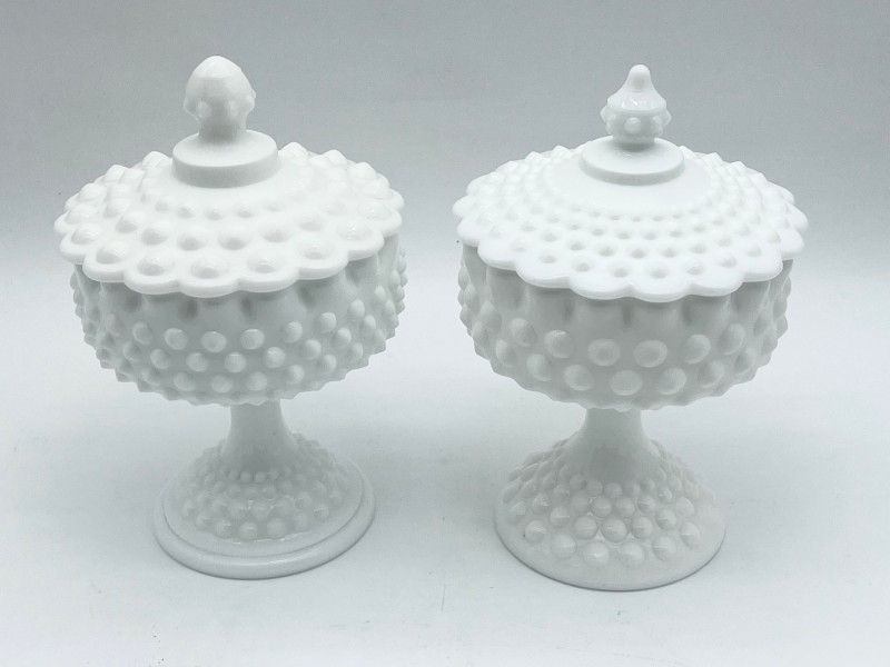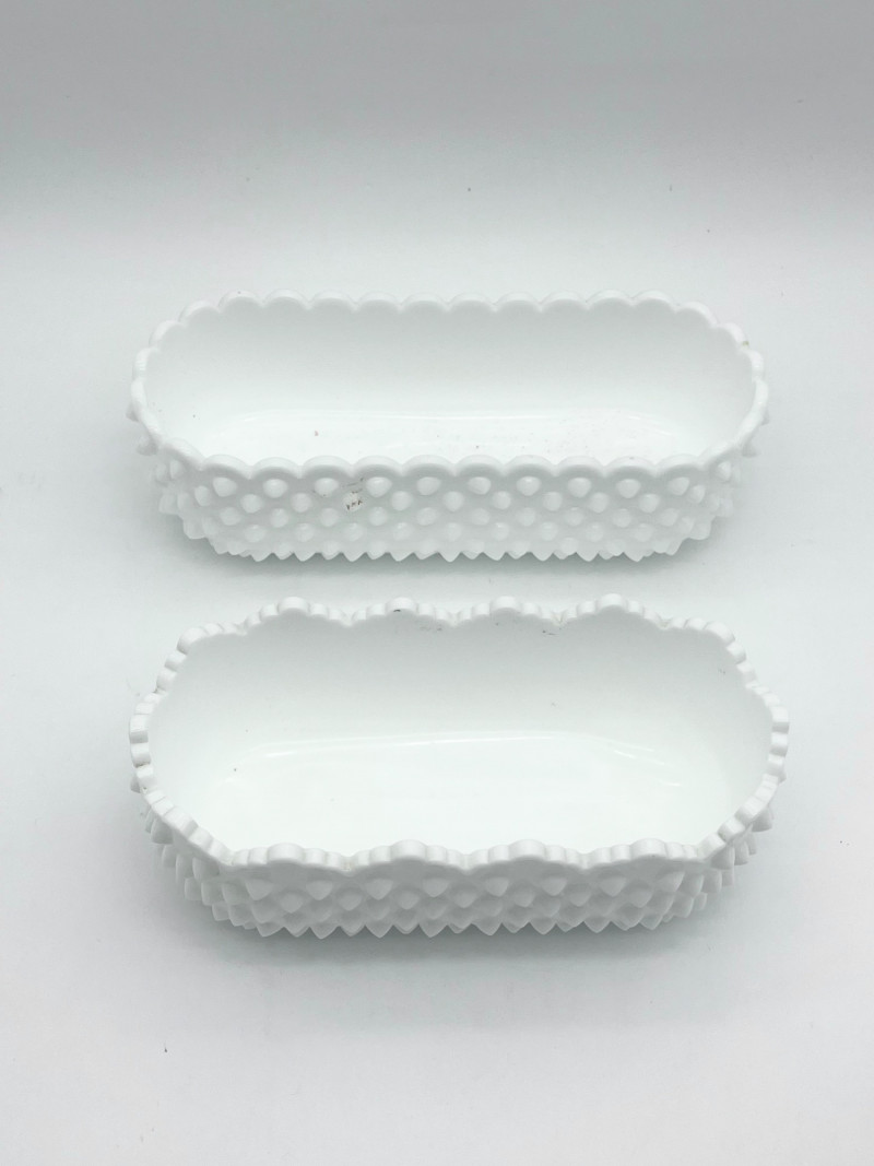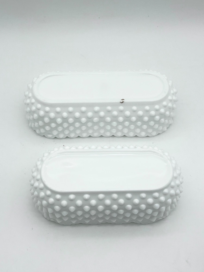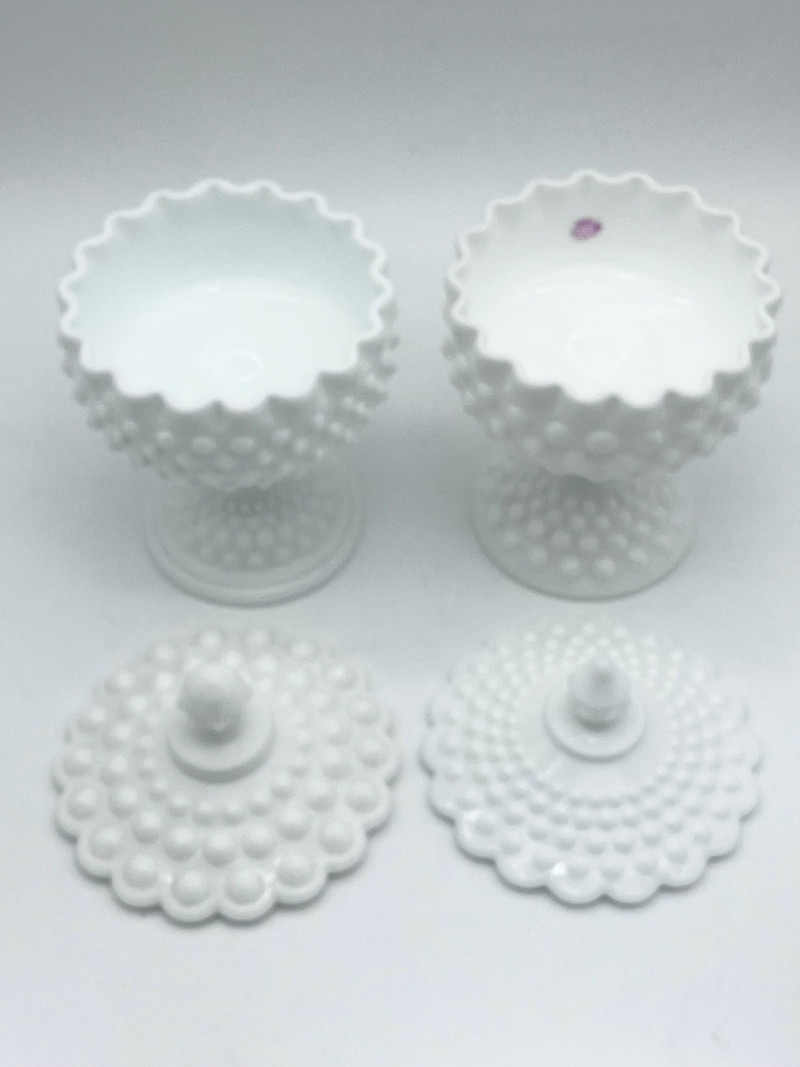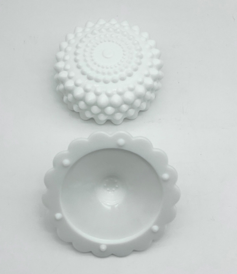 11 Piece Hobnail Milk Glass Lot This lot includes all pieces shown and is a mix of manufacturers. Most pieces are in very good condition but a few have some minor flaws, mainly chipped hobnails but no major cracks or breaks. See photos for details.