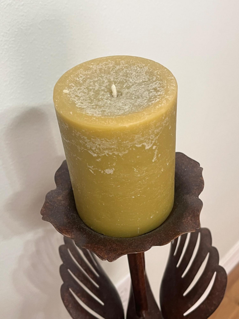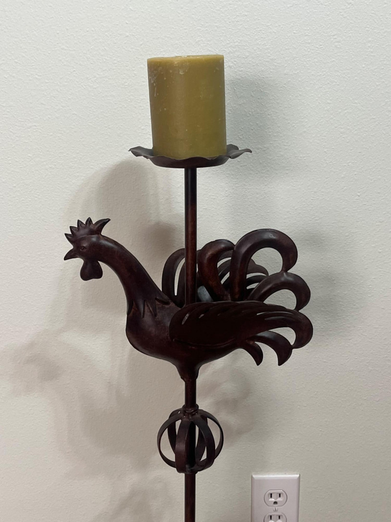 Rustic Styled Rooster Candle Holder Not including the candle, this candle holder measures 36" tall. It is quite bottom heavy making it hard to tip over. It is in like-new condition and looks to have never been used.