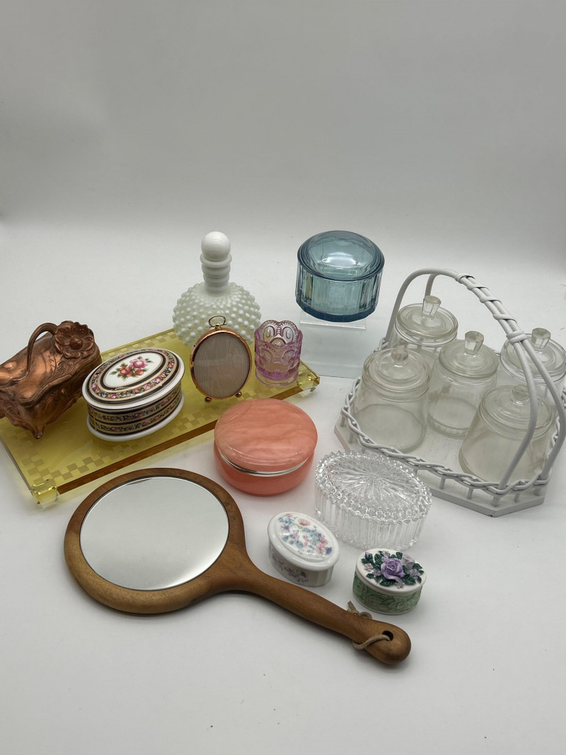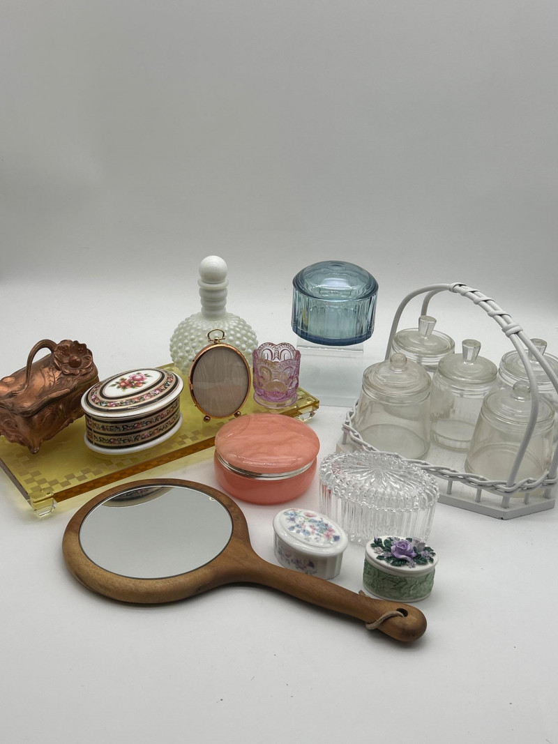 Vintage Vanity & Cute Knick Knacks Featuring Fenton & Wedgwood This lot includes: