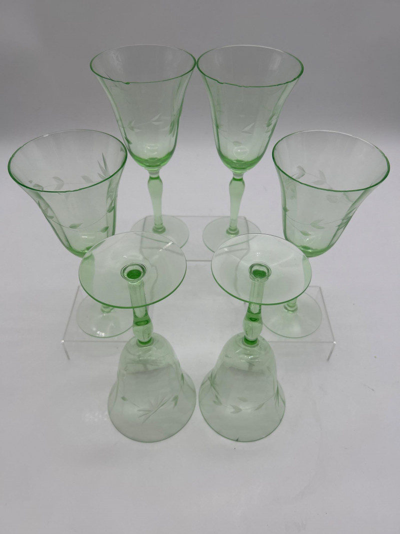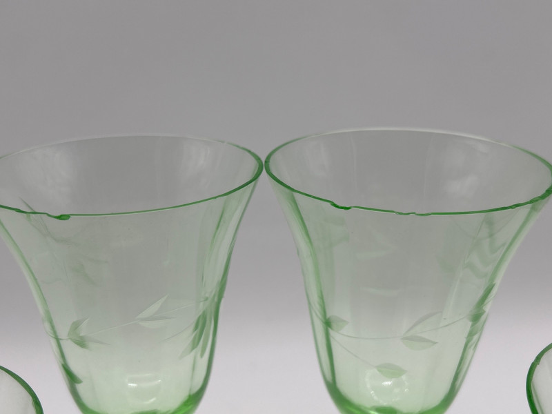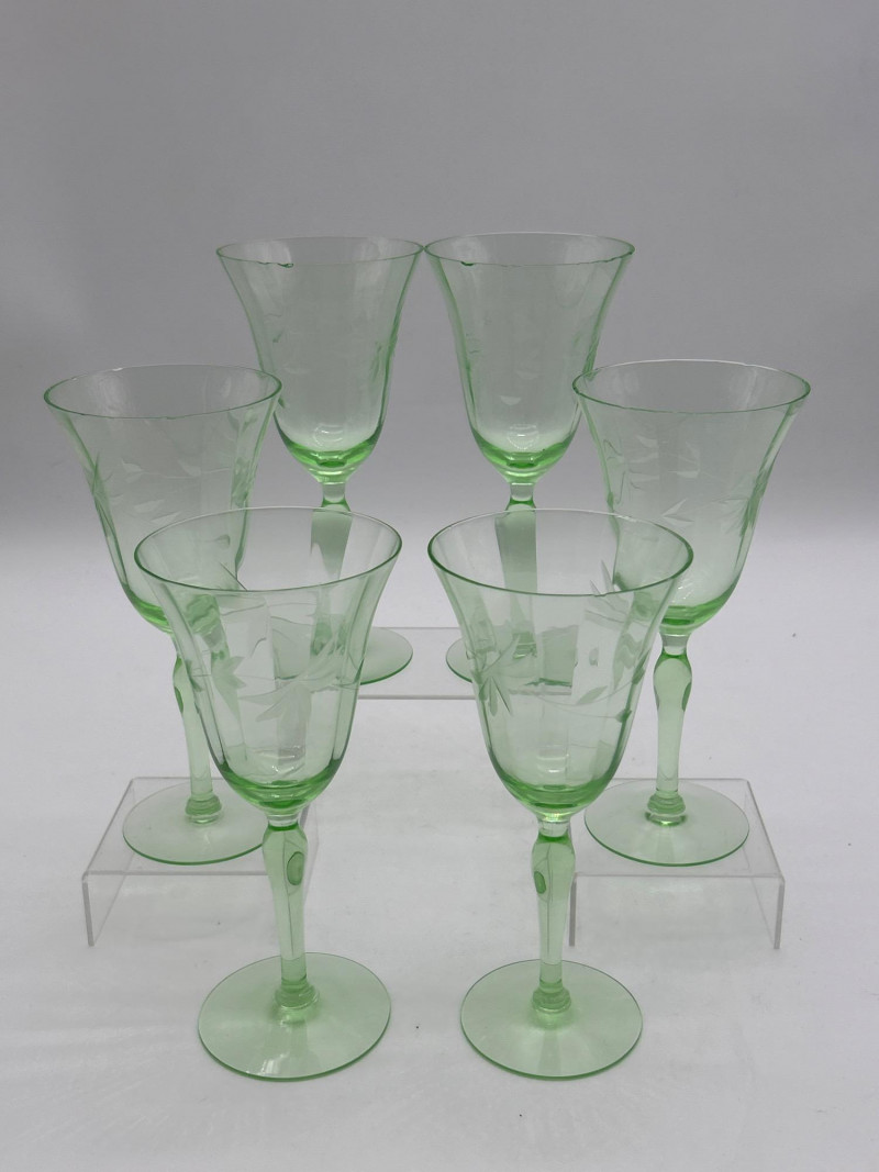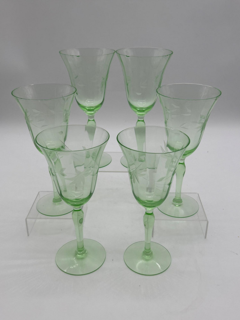 Lot # 142 - Set of 6 Etched Uranium Wine Glasses