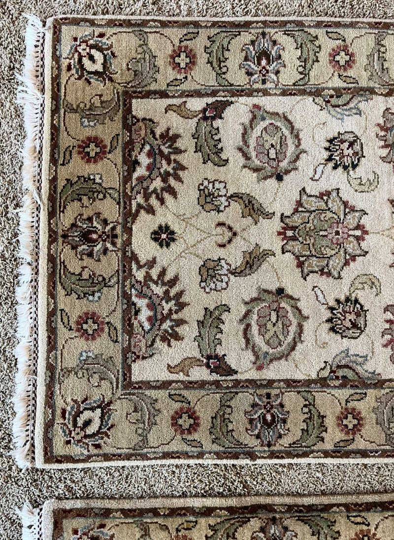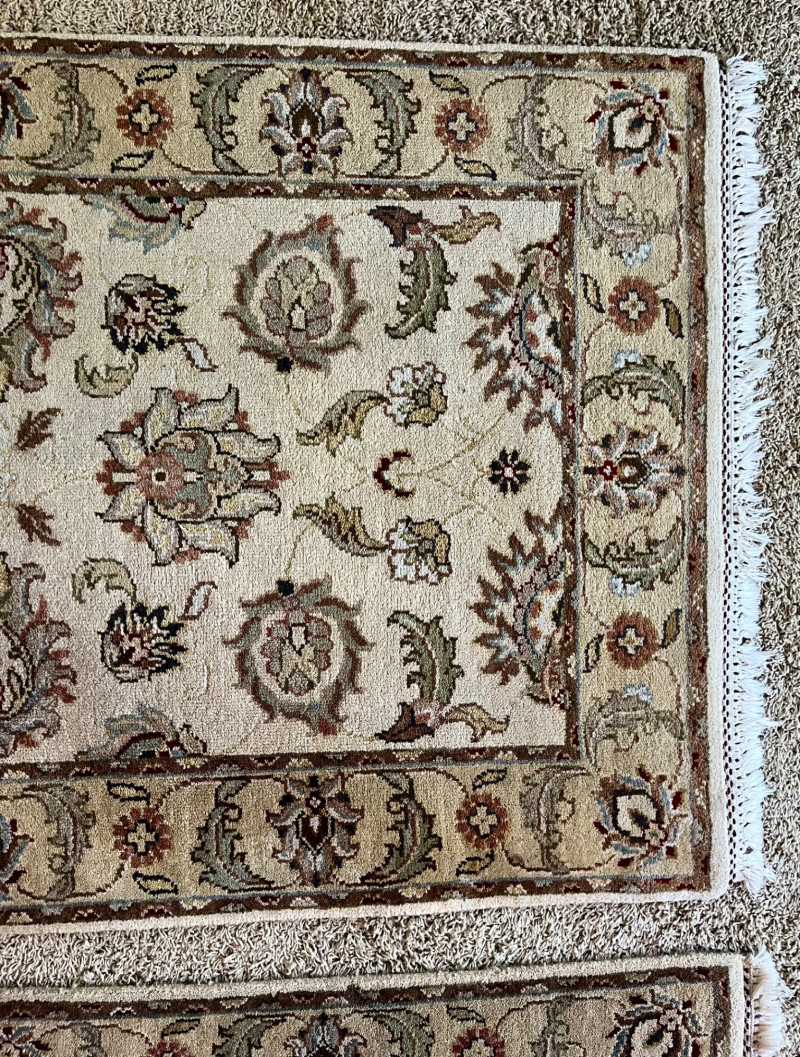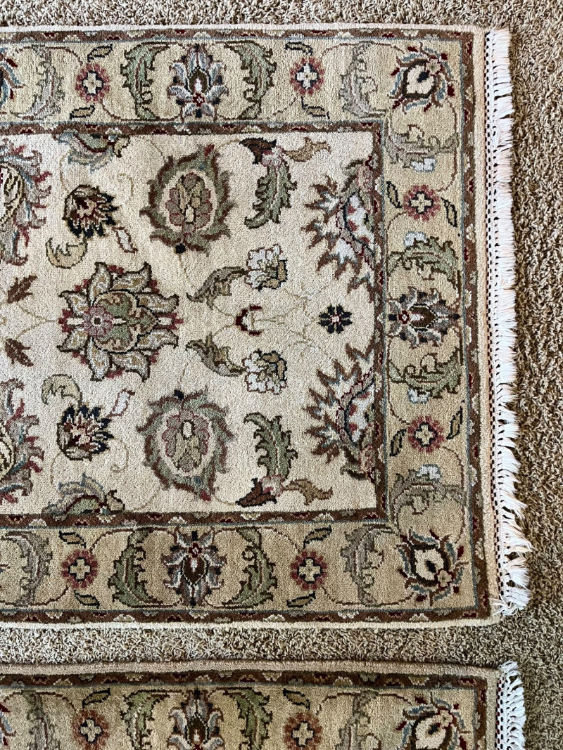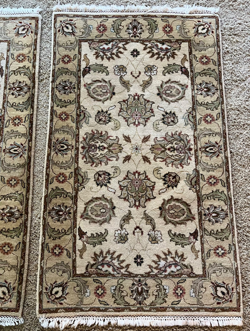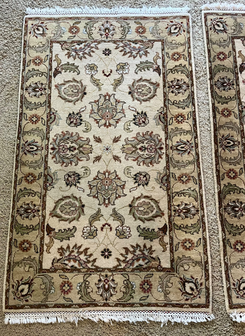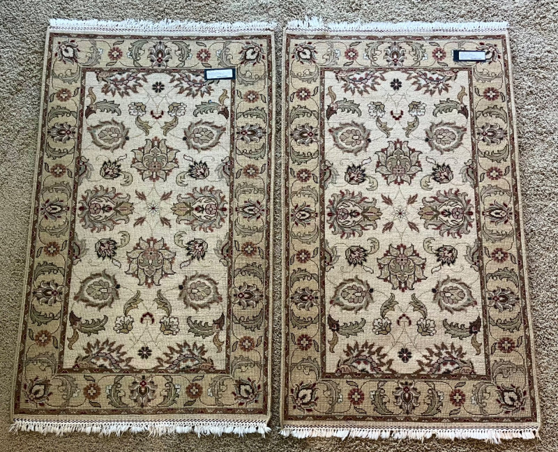 Pair of 3' 1" x 5' Hand Knotted Floral Rugs These two rugs are in very good condition with minimal signs of wear. I show both sides of the rug to show true condition.