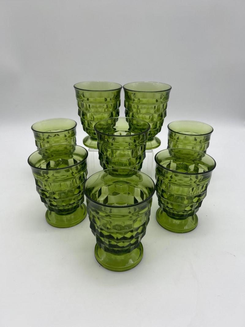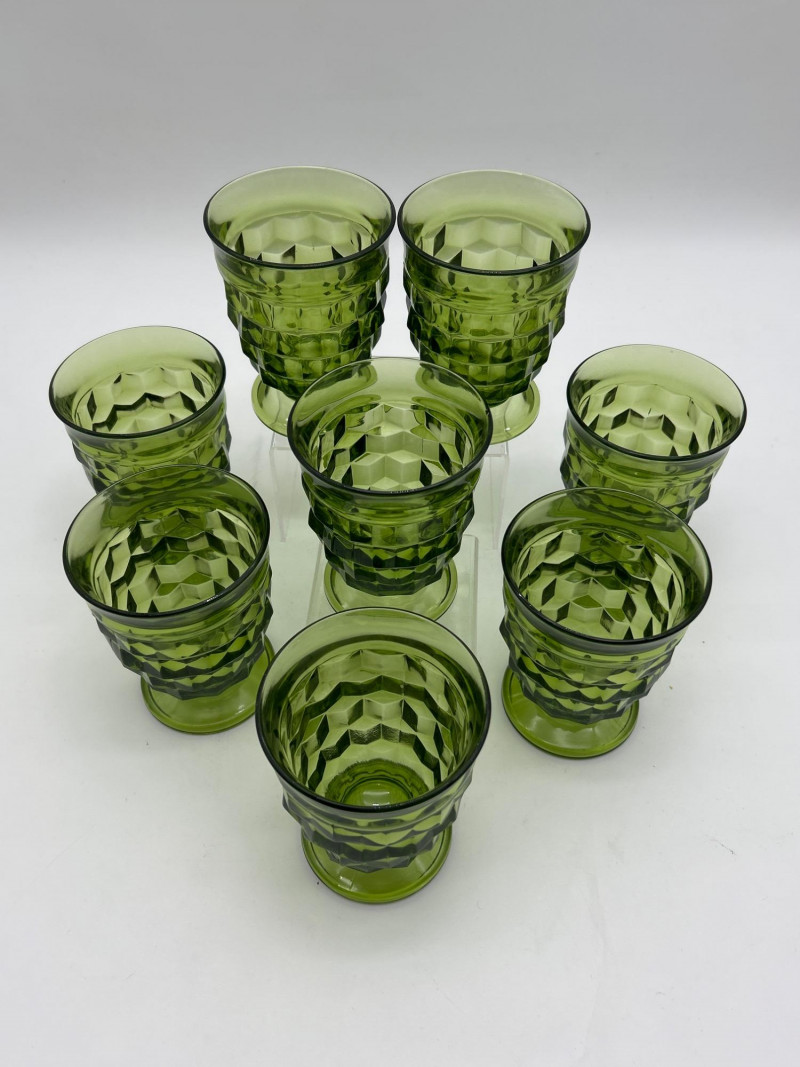 Set of 8 Indiana Glass Whitehall 4 1/4" Glasses These are in very good condition with no cracks or chips that I see.