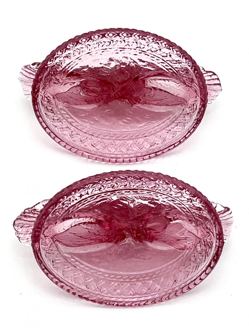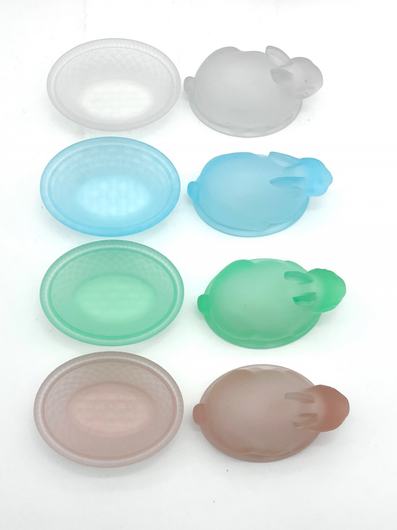 2 Viking Glass Birds on Nests & 4 Indiana Glass Satin Bunnies on Nests These are all in good condition with no cracks or chips that I see. Birds on nests are 6" long and the bunnies are 4 1/4" long.