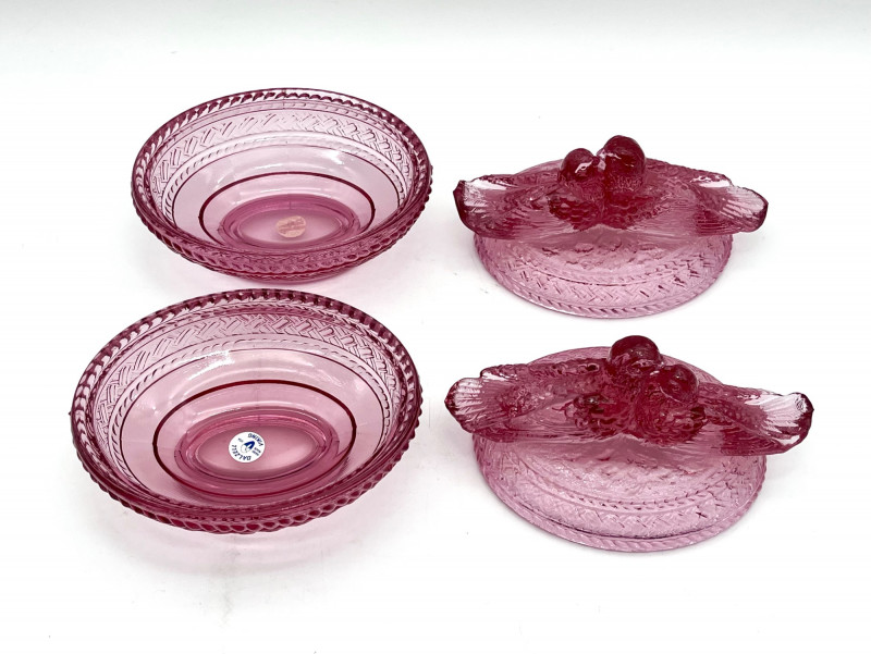 Lot # 161 - 2 Viking Glass Birds on Nests & 4 Indiana Glass Satin Bunnies on Nests