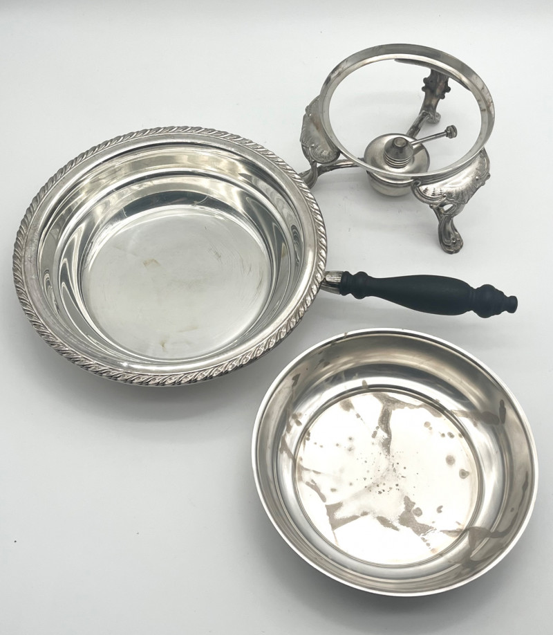 Oneida Silver Plate Chafing Dish with Burner In good condition with just some tarnishing.