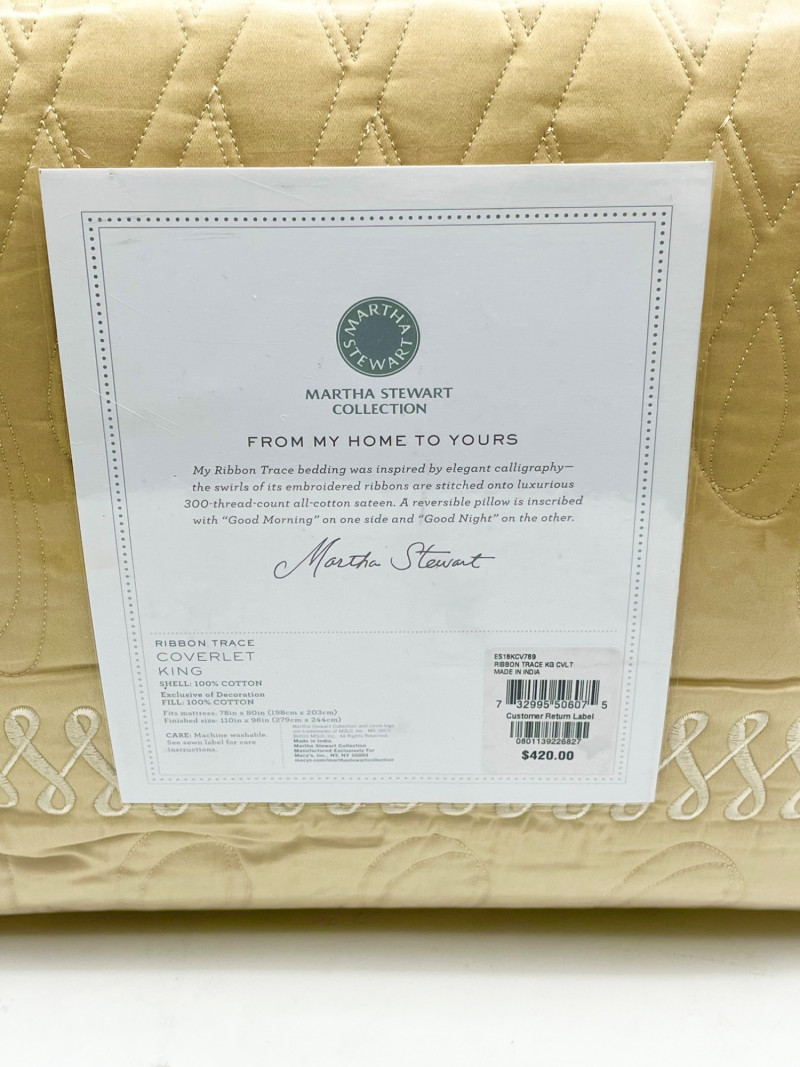 Lot # 172 - Martha Stewart King Size Coverlet New in Package Never Opened