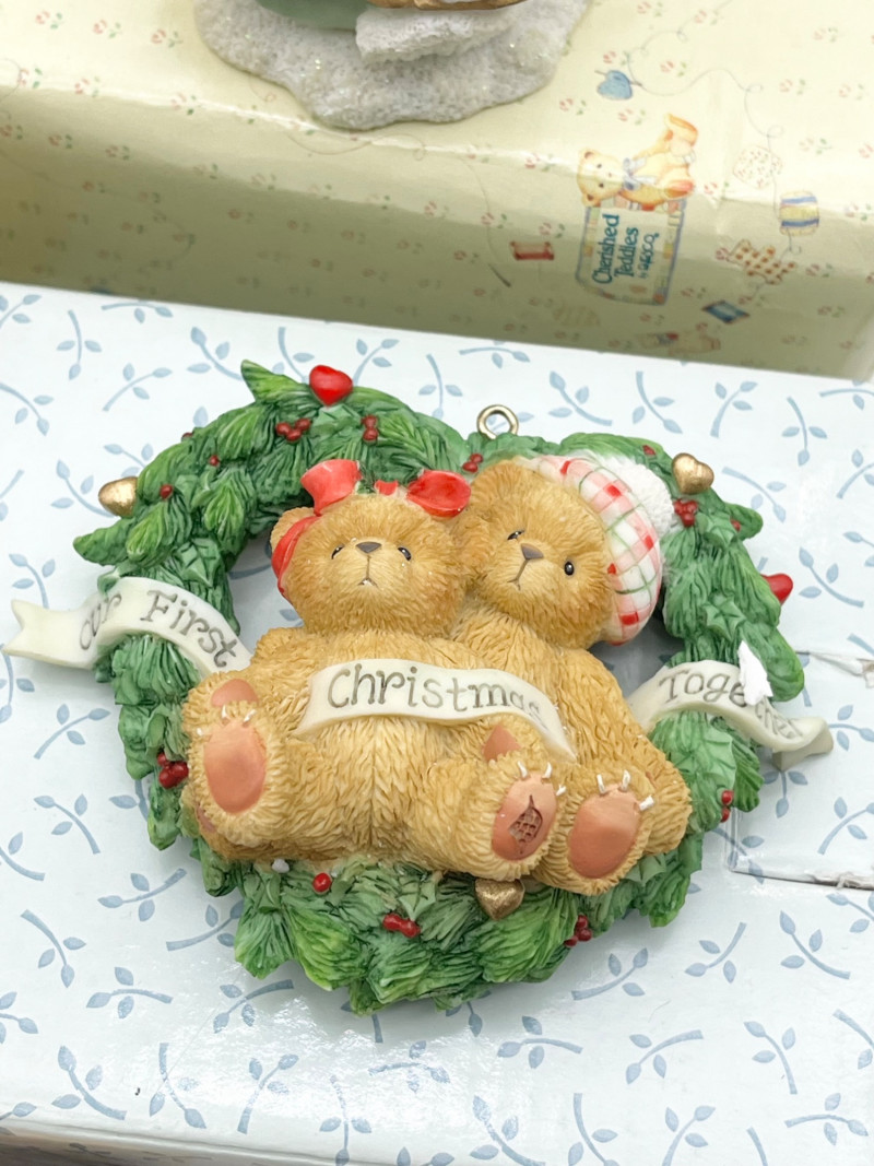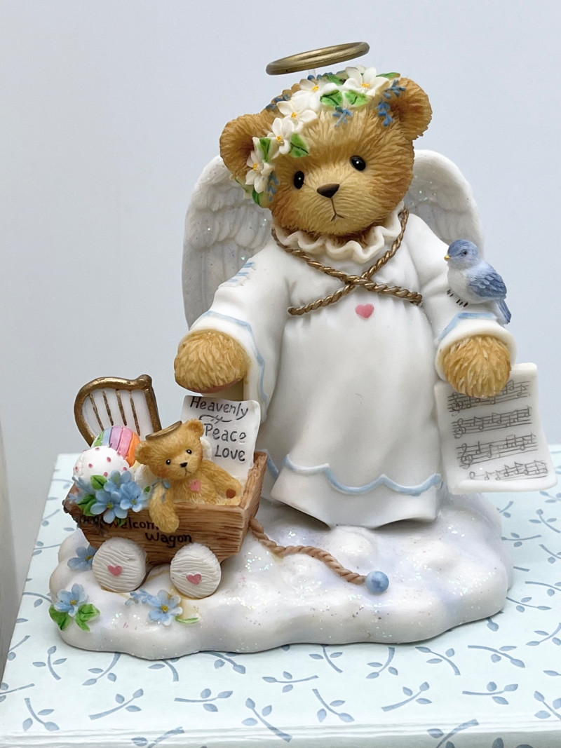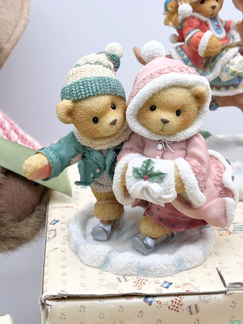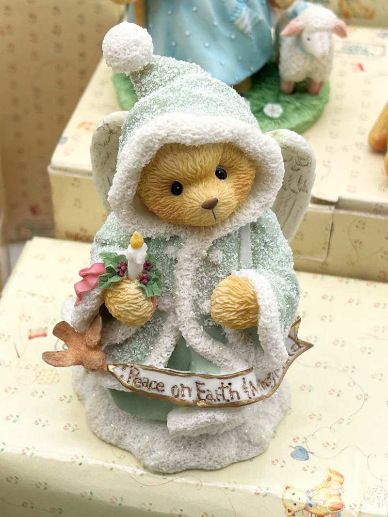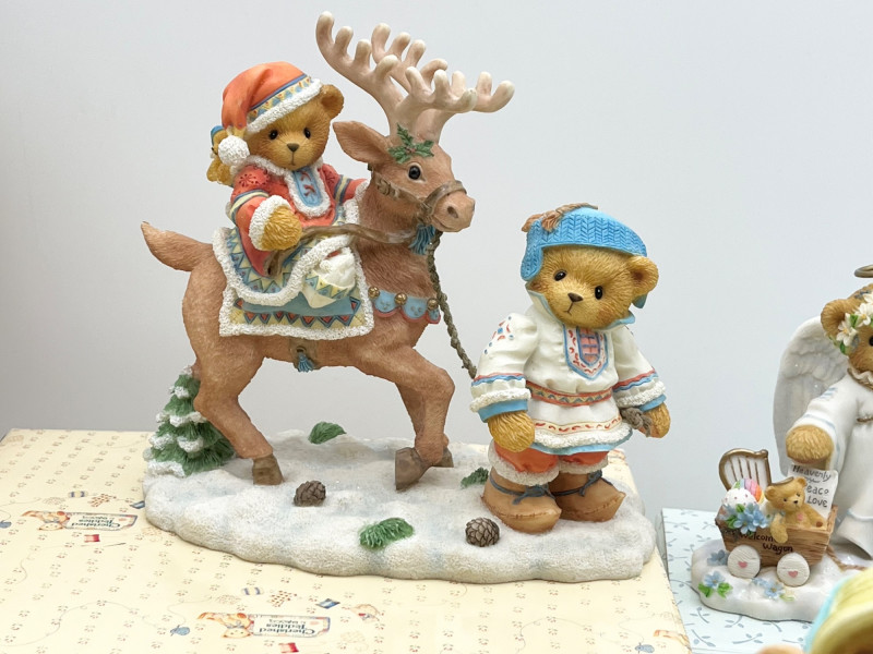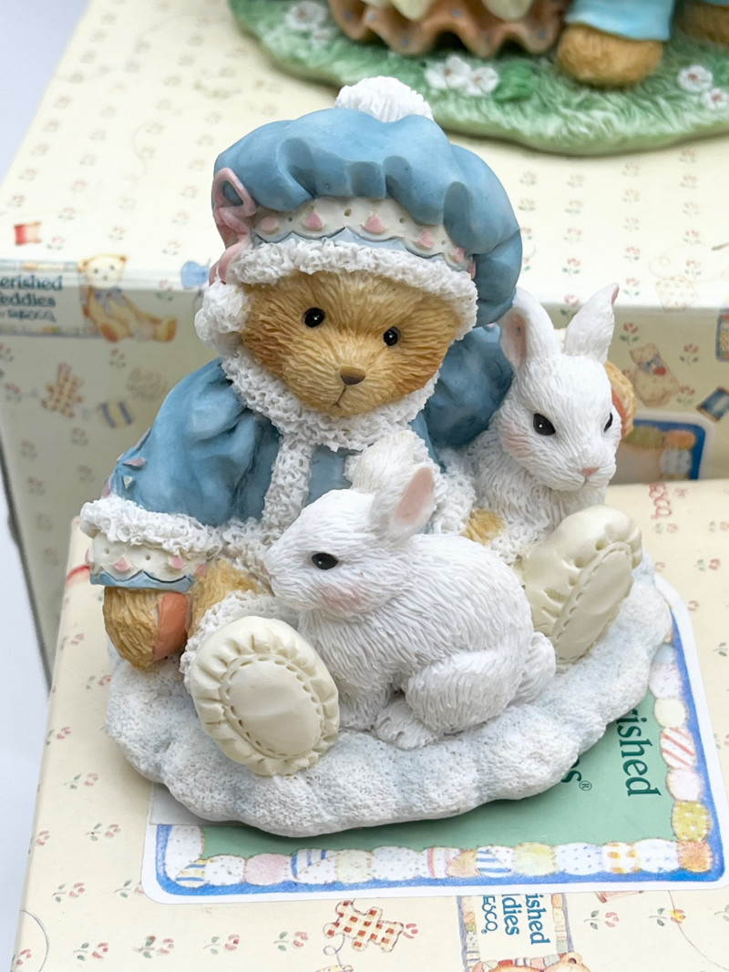 Cherished Teddies and Victorian Dressed Stuffed Bear All of the Cherished Teddies figurines are in good condition and most have their original boxes.