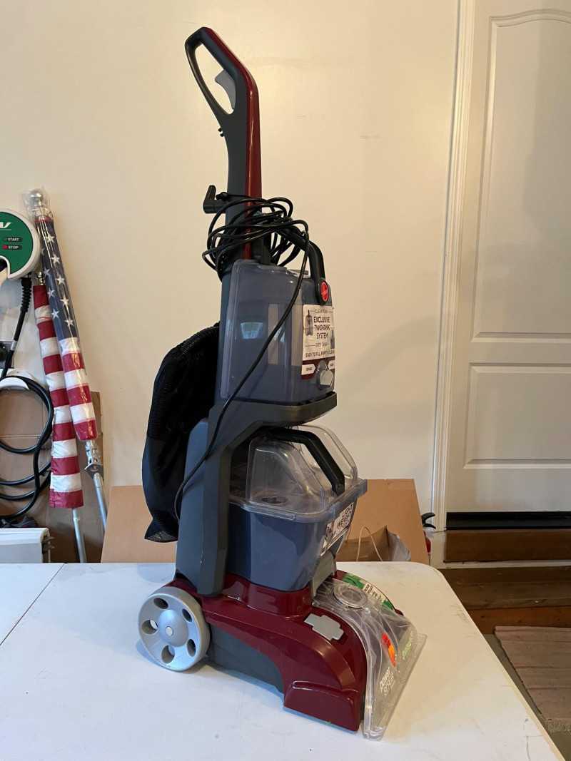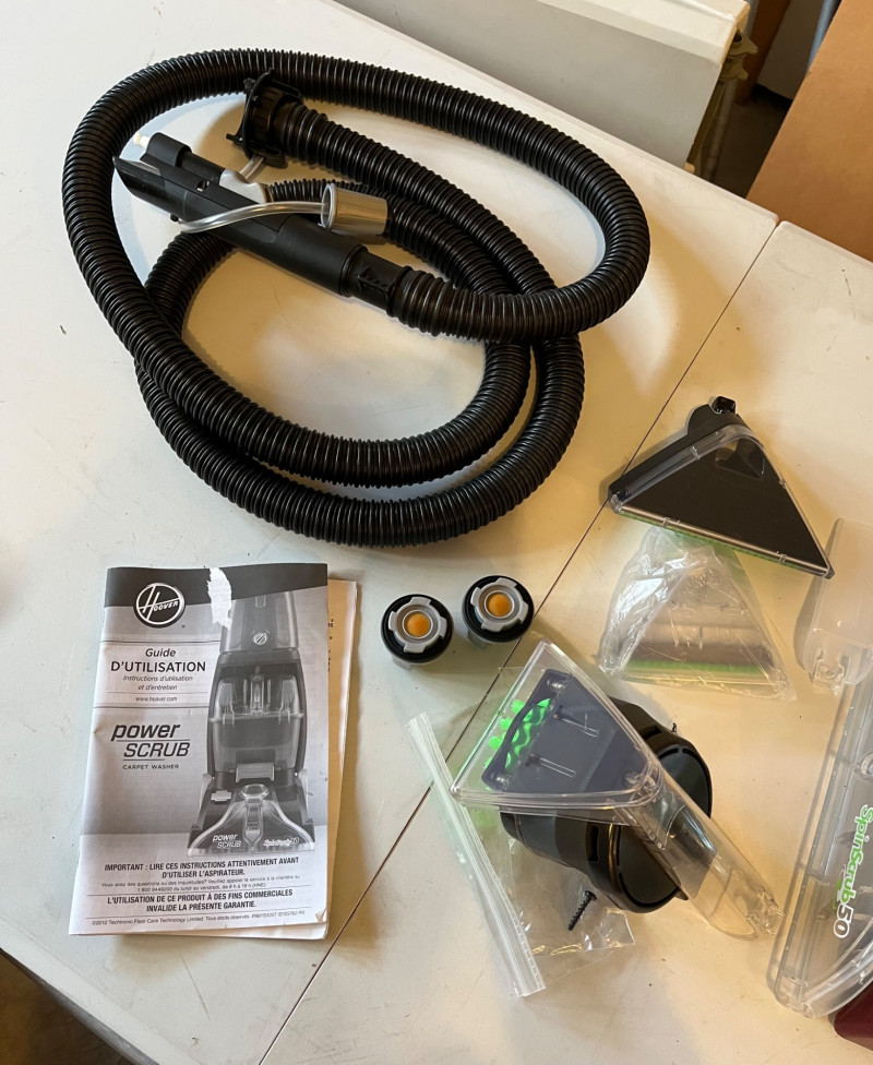 Hoover Power Scrub Carpet Cleaner Untested but powers on. Includes owners manual! This has been in storage, wrapped up in plastic, so its not even really dirty and barely looks used.