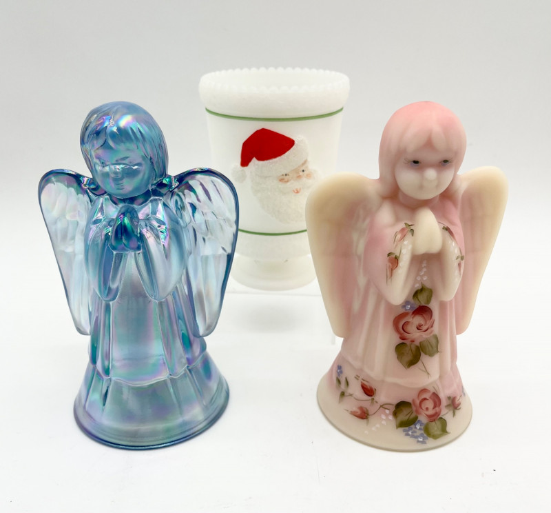 Lot # 185 - Fenton Hand Painted Santa Candle Holder and Two Praying Angels