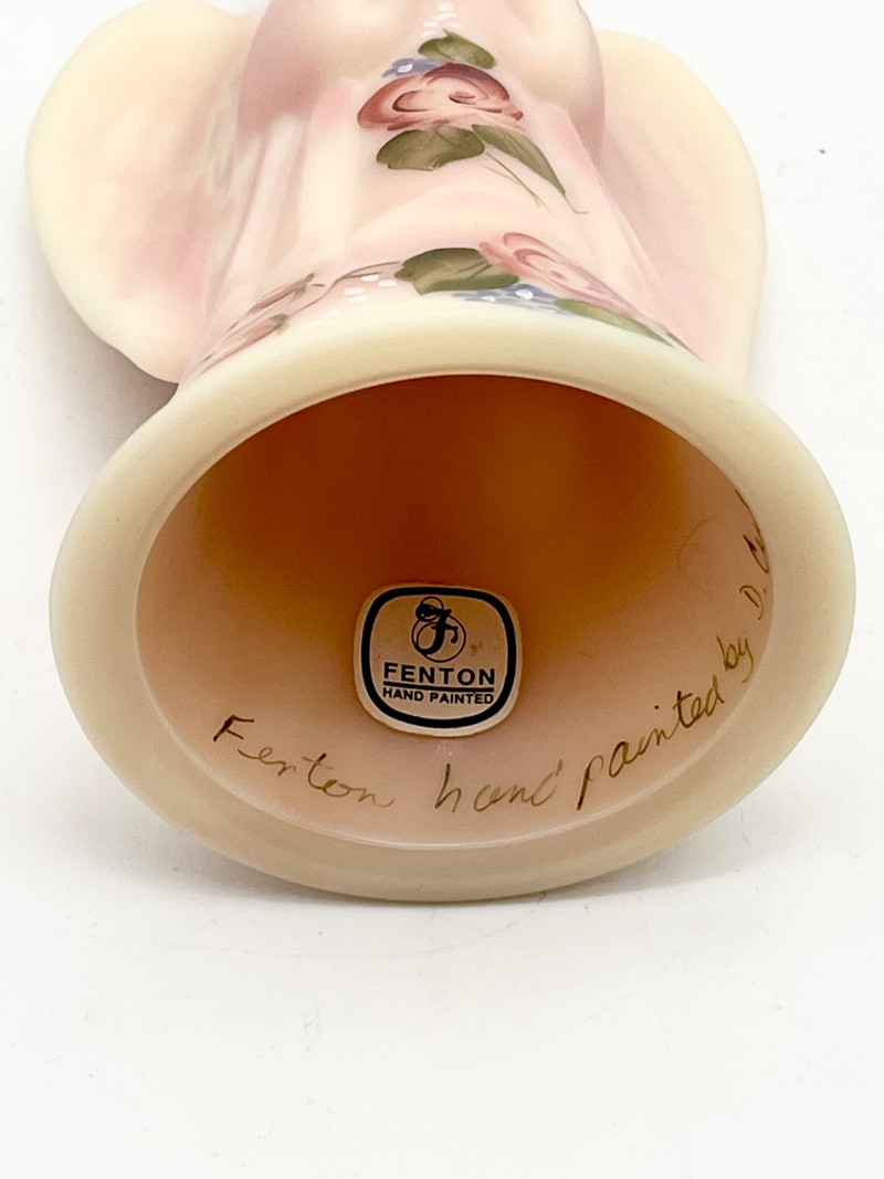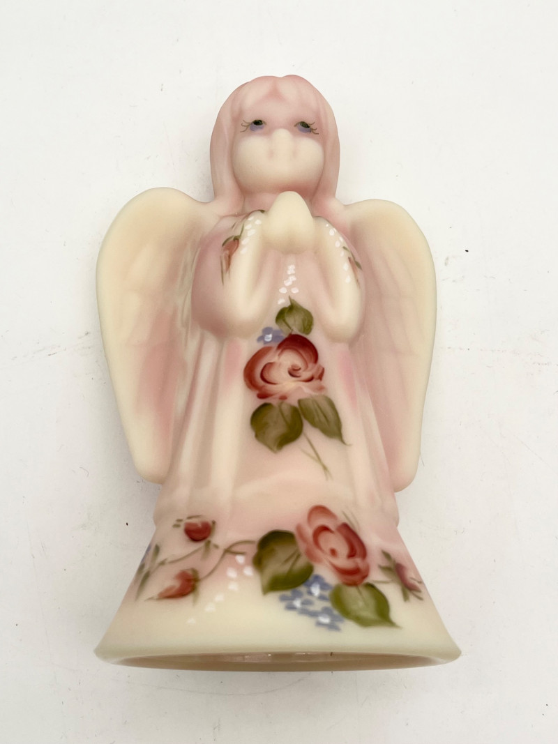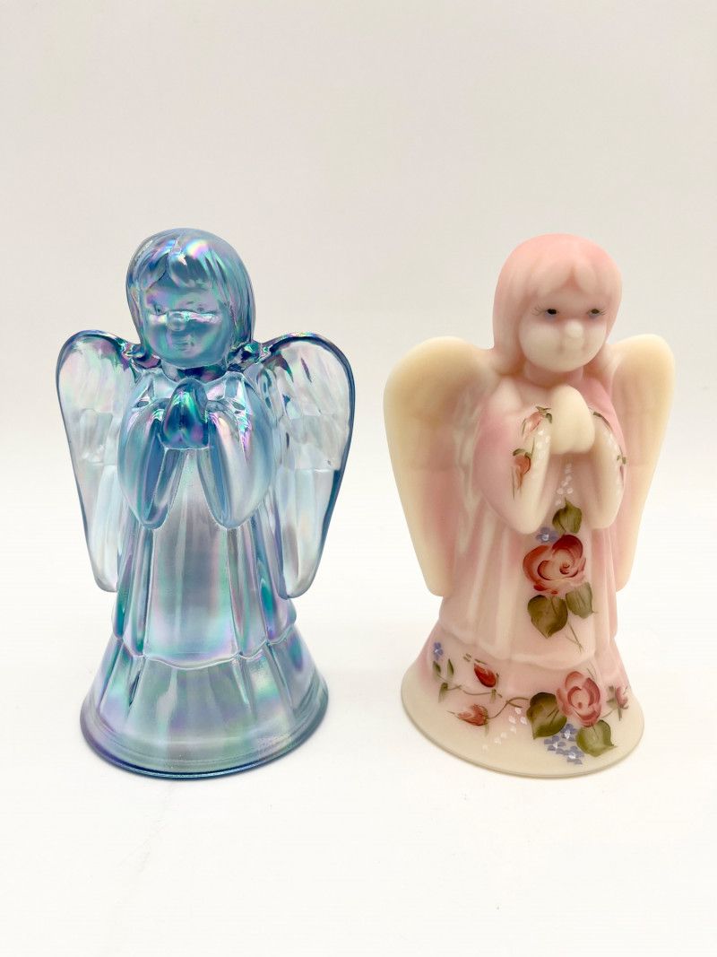 Fenton Hand Painted Santa Candle Holder and Two Praying Angels Candle holder is 4 1/2" tall, angels are 6" tall. All three pieces are in excellent condition will no damage I can see.