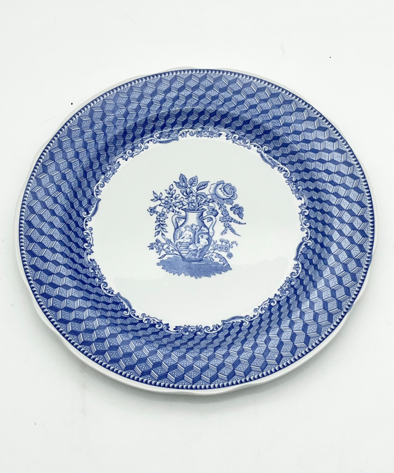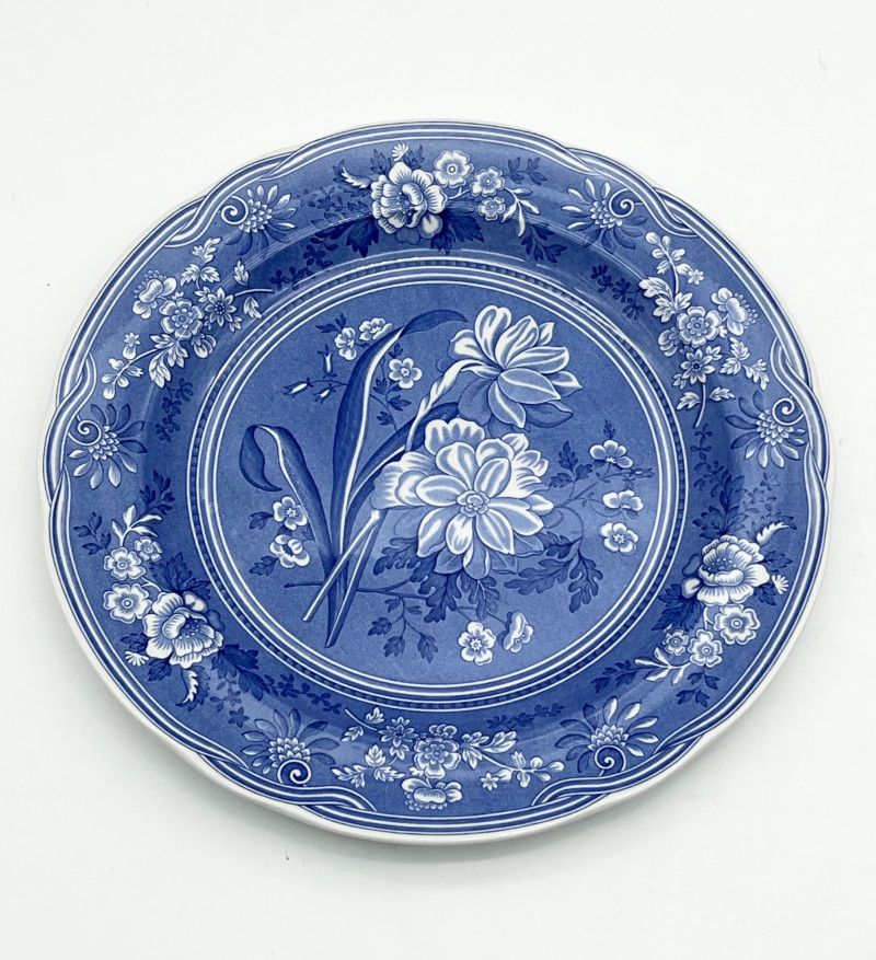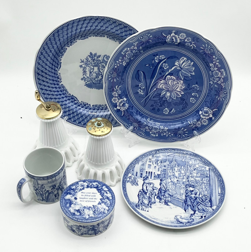Spode Blue Room Collection China and Milk Glass Salt & Pepper Shakers The two larger plates are 10" and the salt and pepper shakers are 5 1/4" tall. The china pieces are all in good condition with no cracks, chips or crazing that I see. The salt and pepper shakers look to be in good condition with just some tarnishing on the lid of the salt shaker.