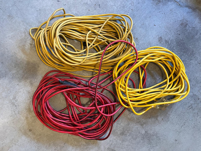 Three Heavy Duty Extension cords These are untested but look to be in good condition with no exposed wire and no repairs.