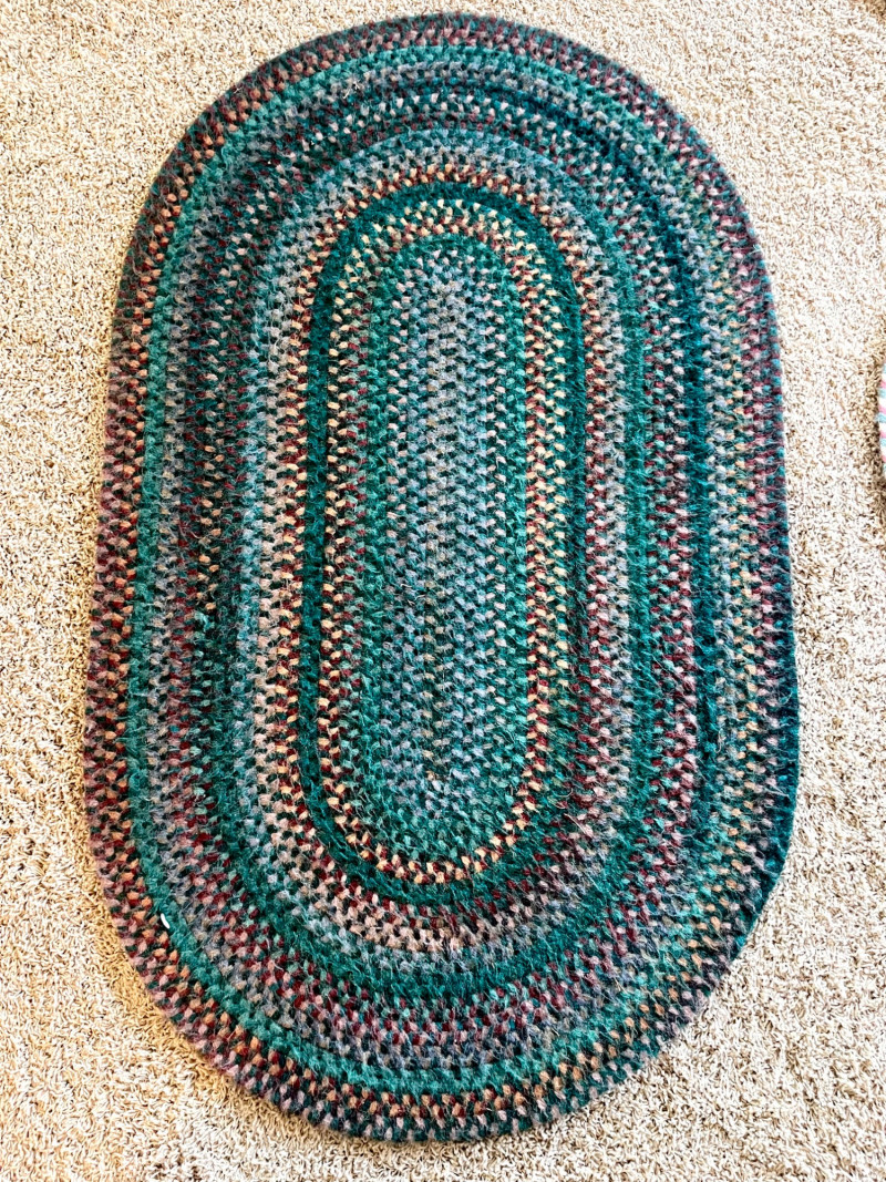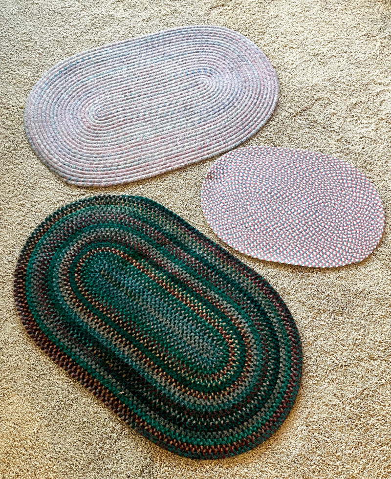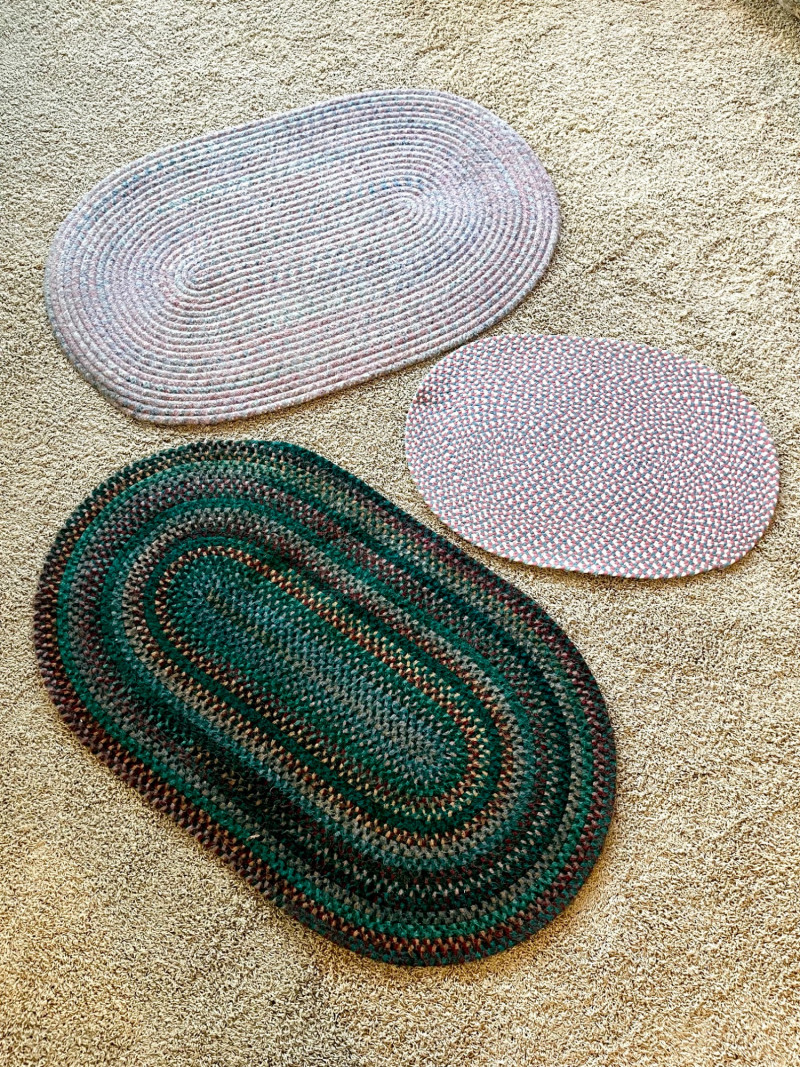 Set of Three Vintage Styled Woven Rugs These range between 33" and 50" in length and all are in good condition with no apparent damage or stains. There are two photos of each rug because I show both sides of each rug.