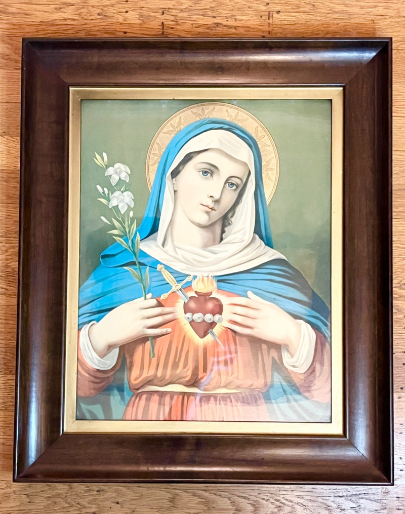 Lot # 19 - Immaculate Heart of Mary Print in Vintage Wood Frame - 21" x 25"