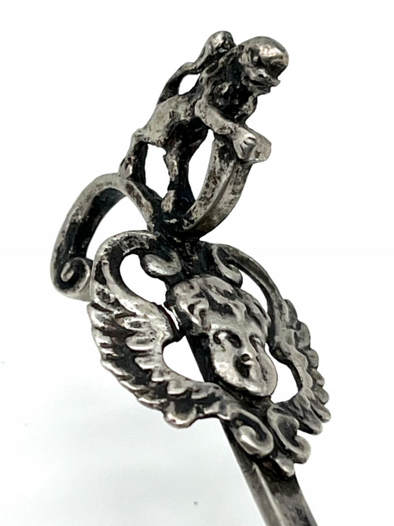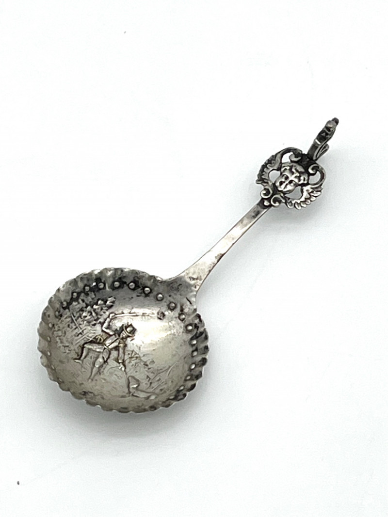 Lot # 7 - Antique Silver* Repoussé Caddy Spoon AKA "Monkey Spoon"