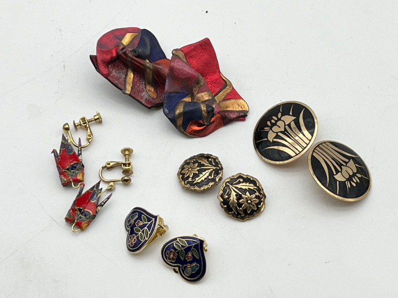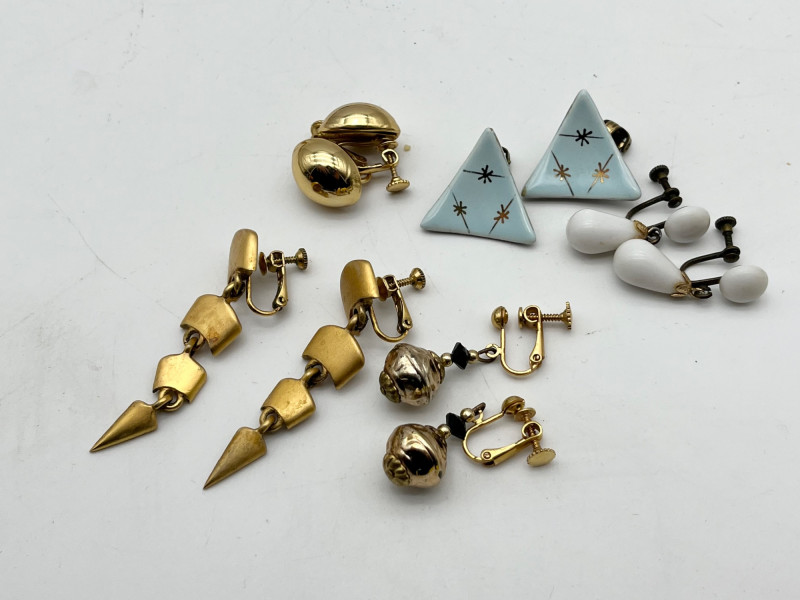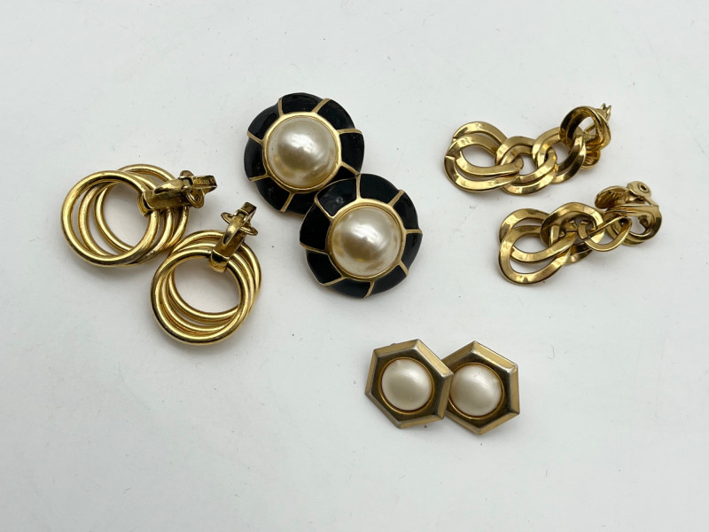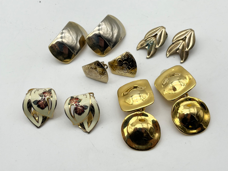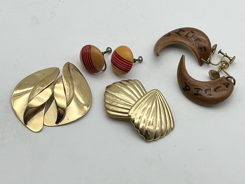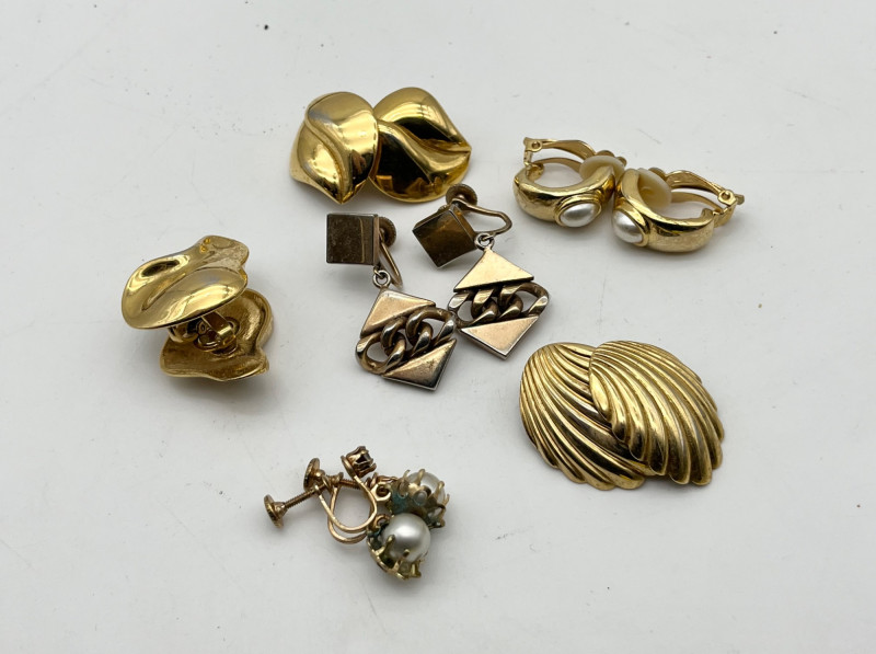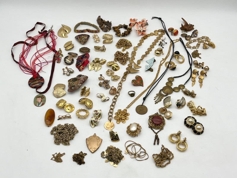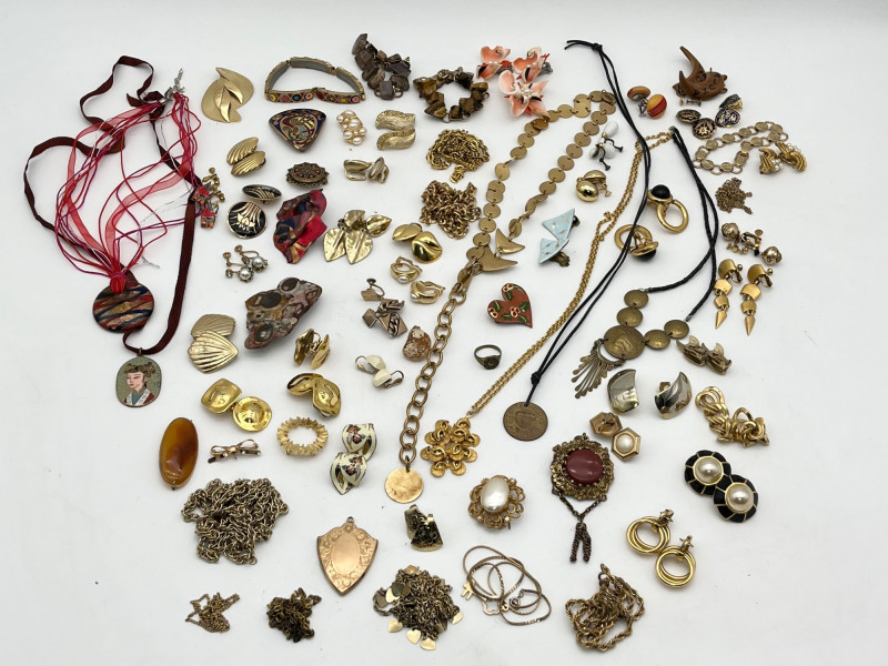 Large Lot of Gold Tone and Natural Elements Costume Jewelry All earrings shown are clip-on style.
