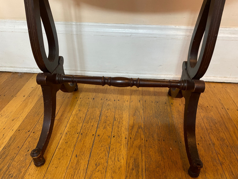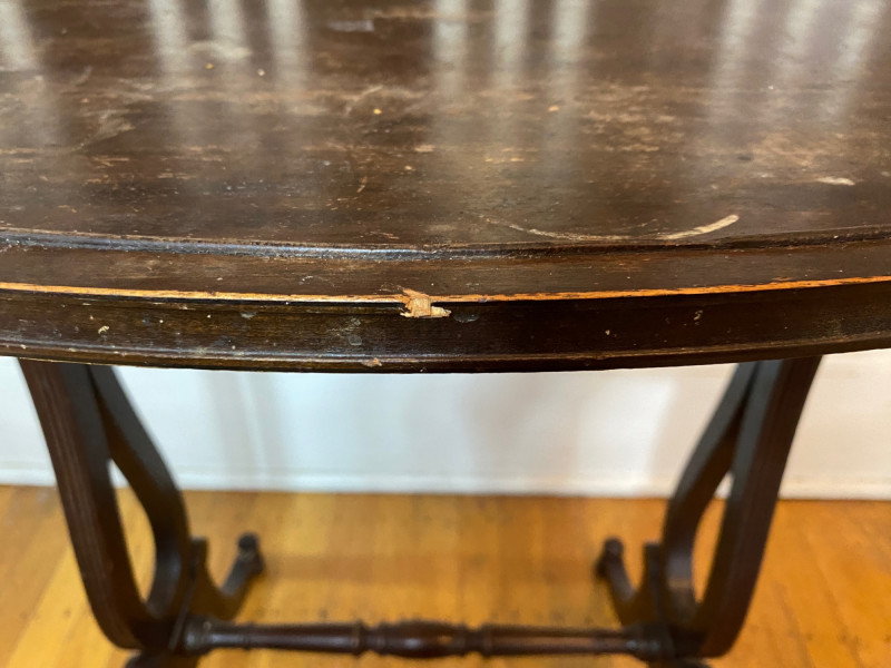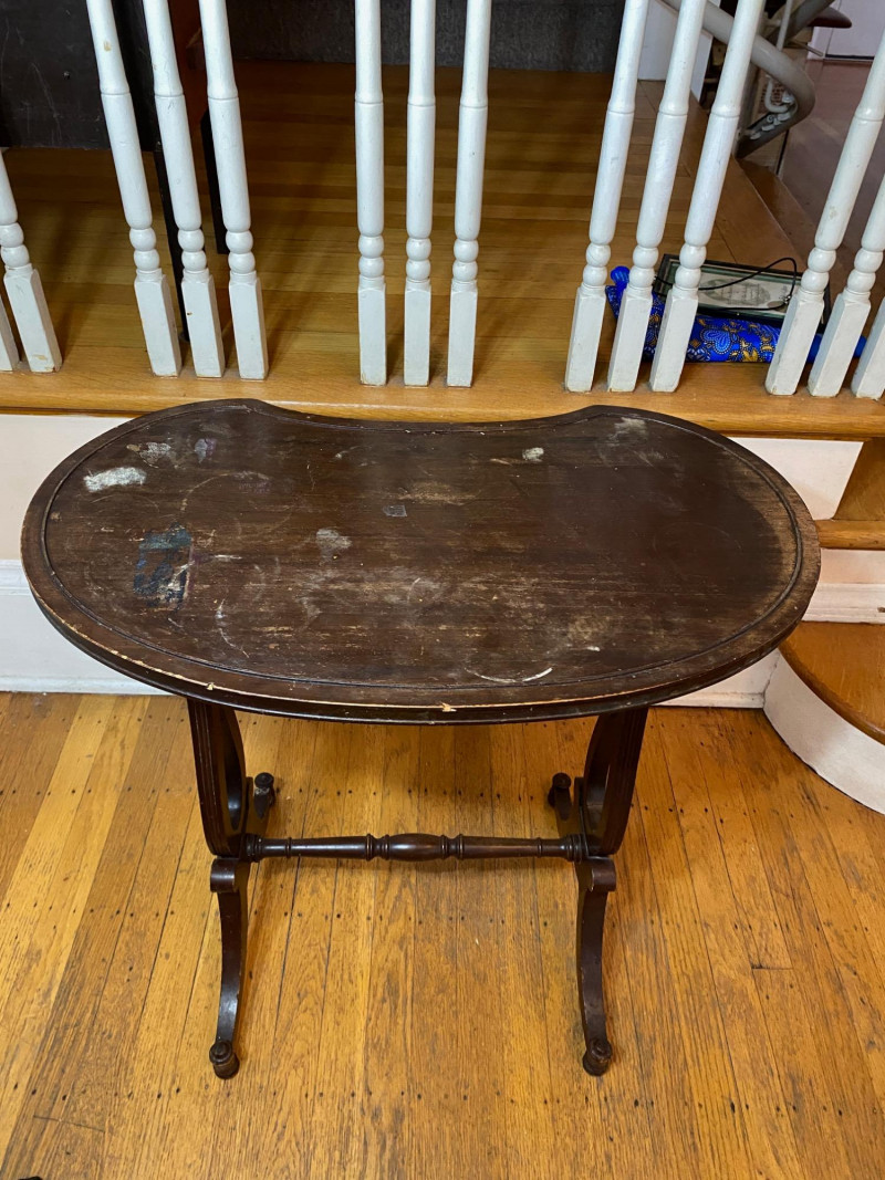 Kidney Shaped Dark Wood Accent Table - SEE PHOTOS This great little table needs a little TLC to clean up the top. Otherwise, it is in good structural condition.