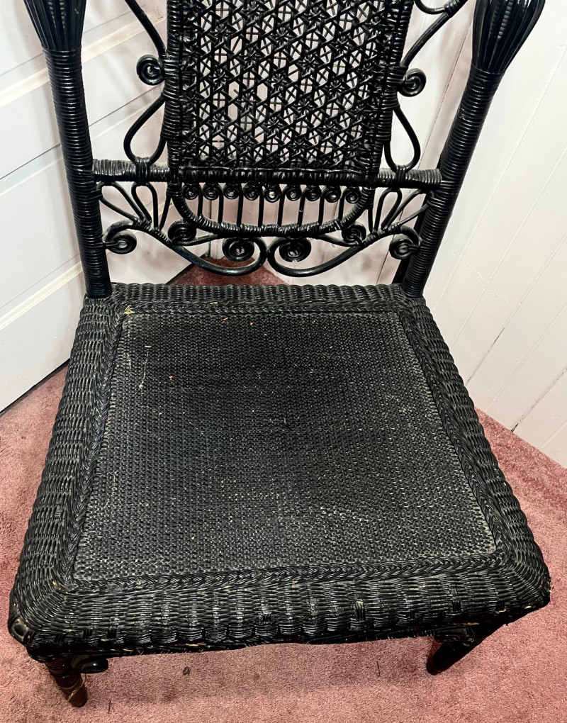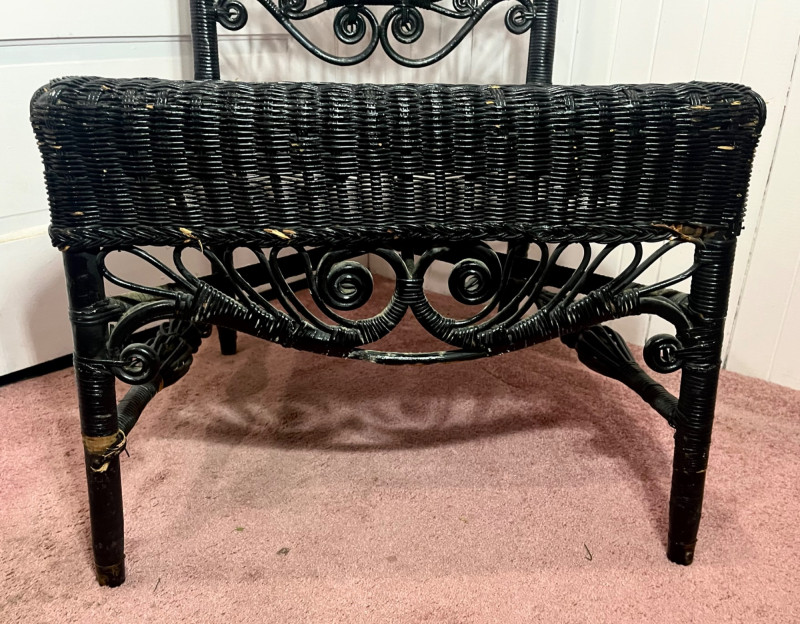 Lot # 47 - Unique Vintage Black High Back Wicker Chair
