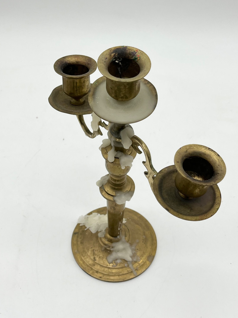 Collection of Vintage and Antique Brass Decor The candelabra is 9 1/2" tall. All pieces are in good vintage condition.