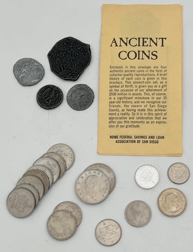 International Vintage and Reproduction of Ancient Coins Collection Fronts and backs of every coin is shown in photos. NOTE: Ancient coins are REPRODUCTIONS.