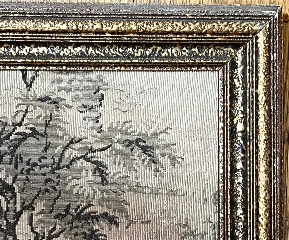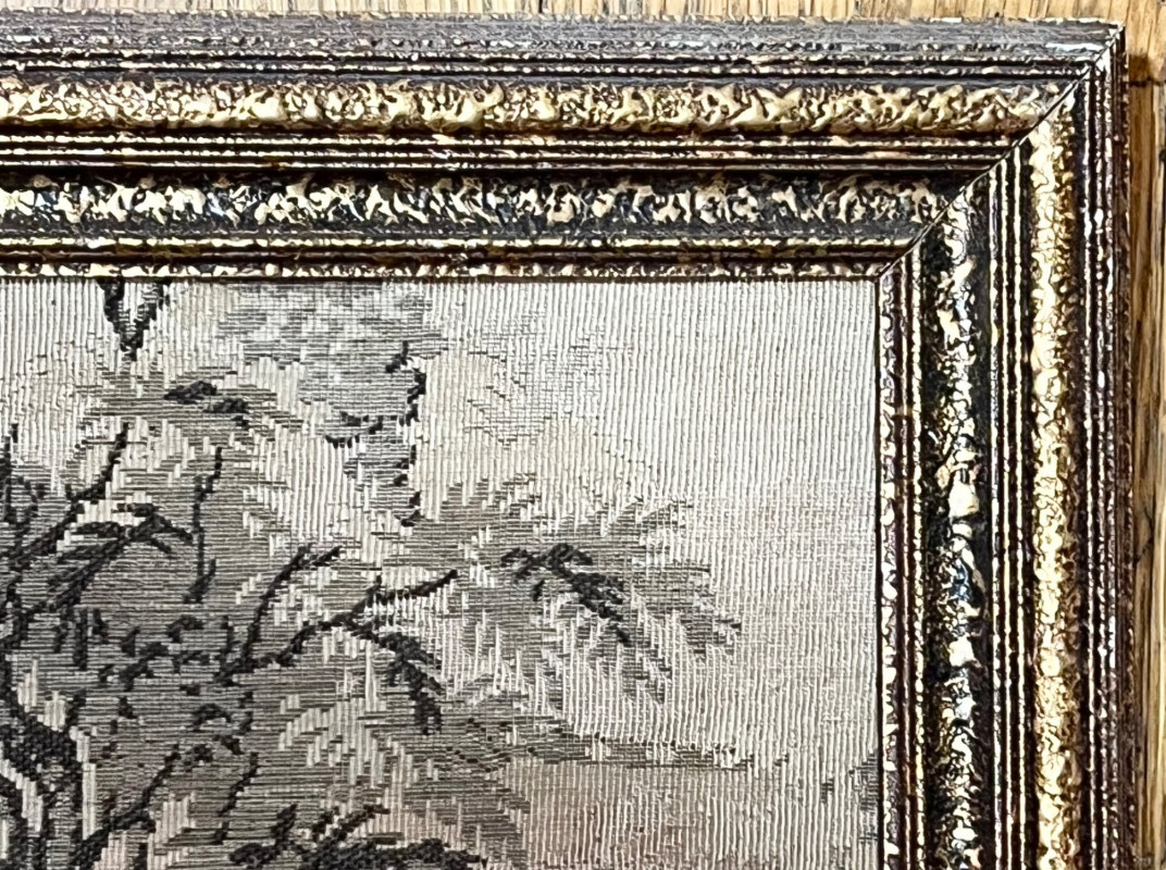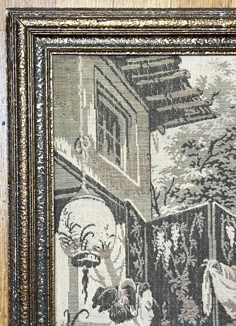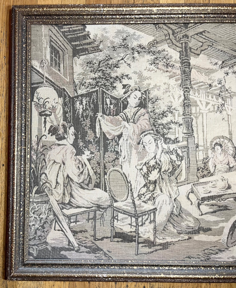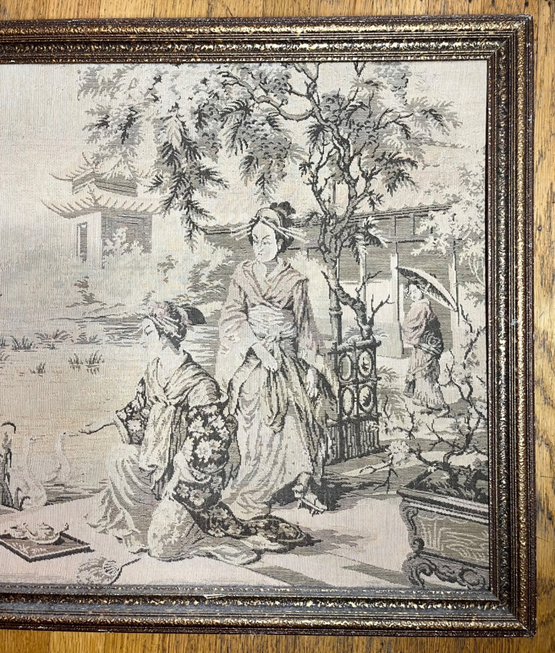 Lot # 56 - Large Asian Silk Tapestry in Ornate Wood Frame - 57 1/2" x 21"