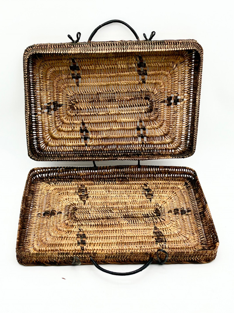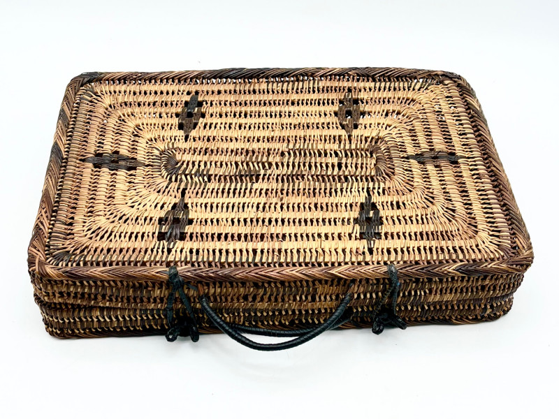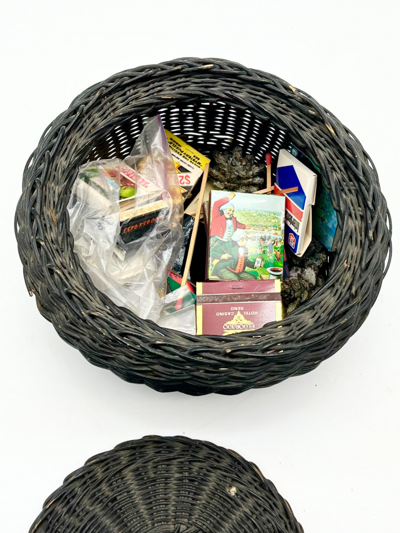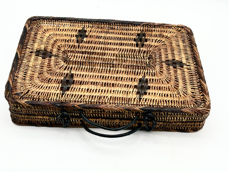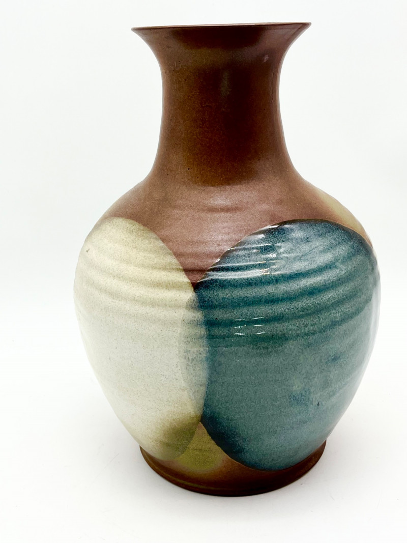 Lot of 4 Household Baskets and Large Stoneware Vase Vase is 13" tall and the large rectangle basket is 17" tall (to top of handle) and 15" long. All items in this lot are in good condition. Baskets have some minor cosmetic wear.