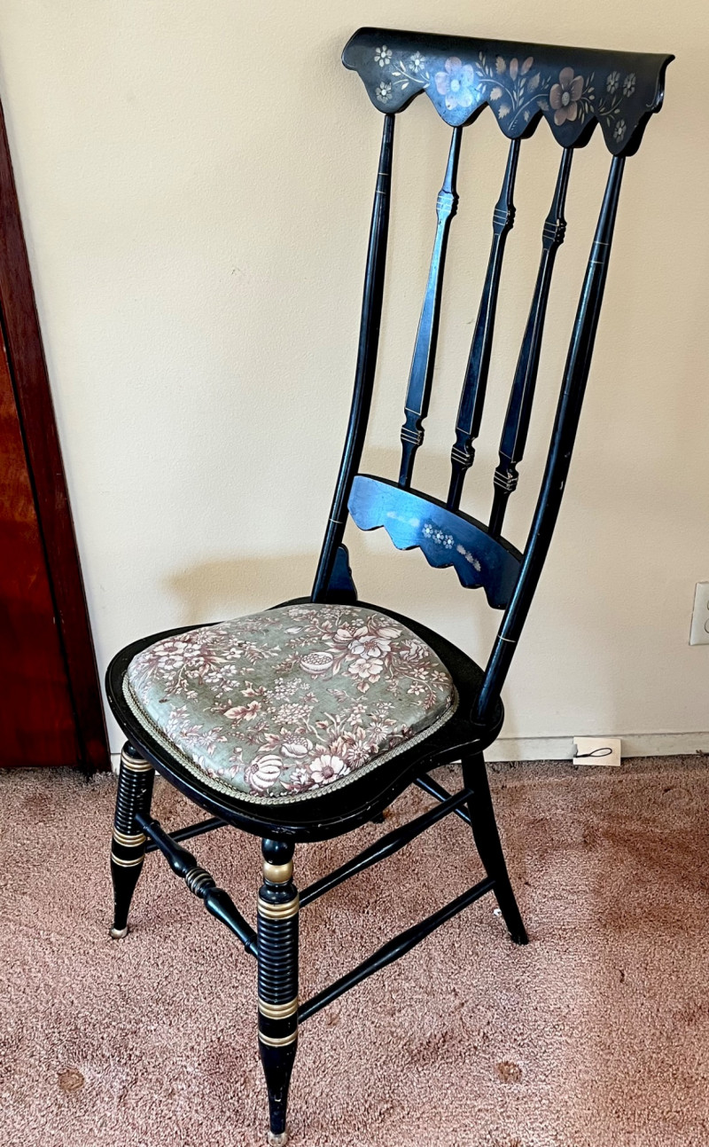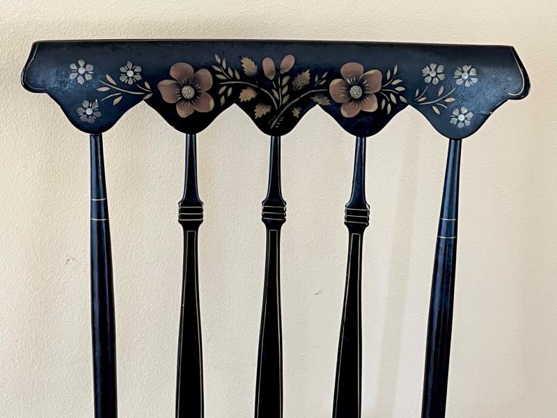 Lot # 87 - Black & Gold High Arrow Back Stenciled Wooden Hitchcock Styled Chair