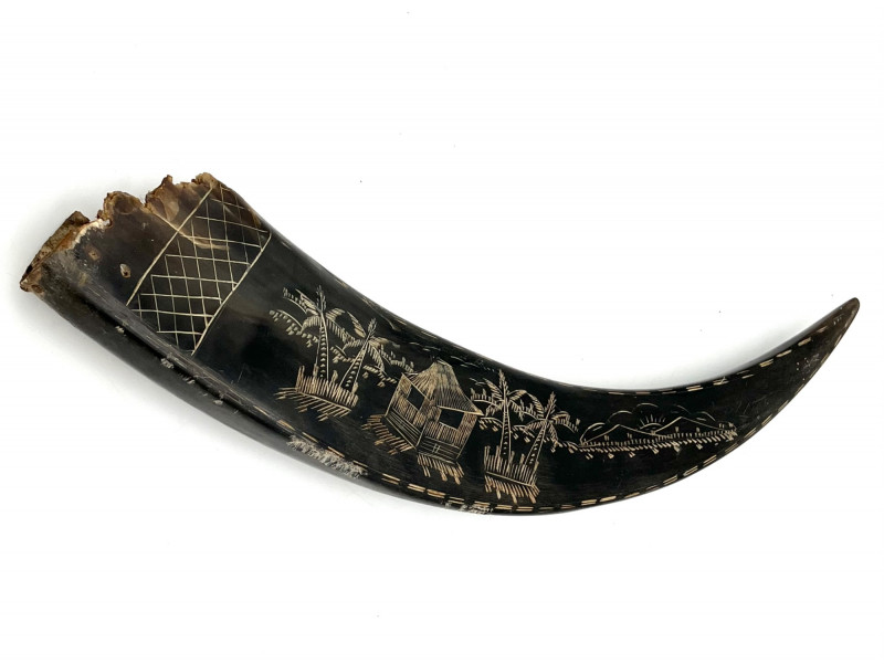 Lot # 103 - Two Carved Water Buffalo? Horns