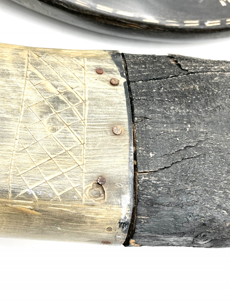 Two Water Buffalo? Horns The larger piece is 26" long and the smaller is 18" long. I use a question mark in the description because I am told these are water buffalo horns but have no proof or authenticity documentation.