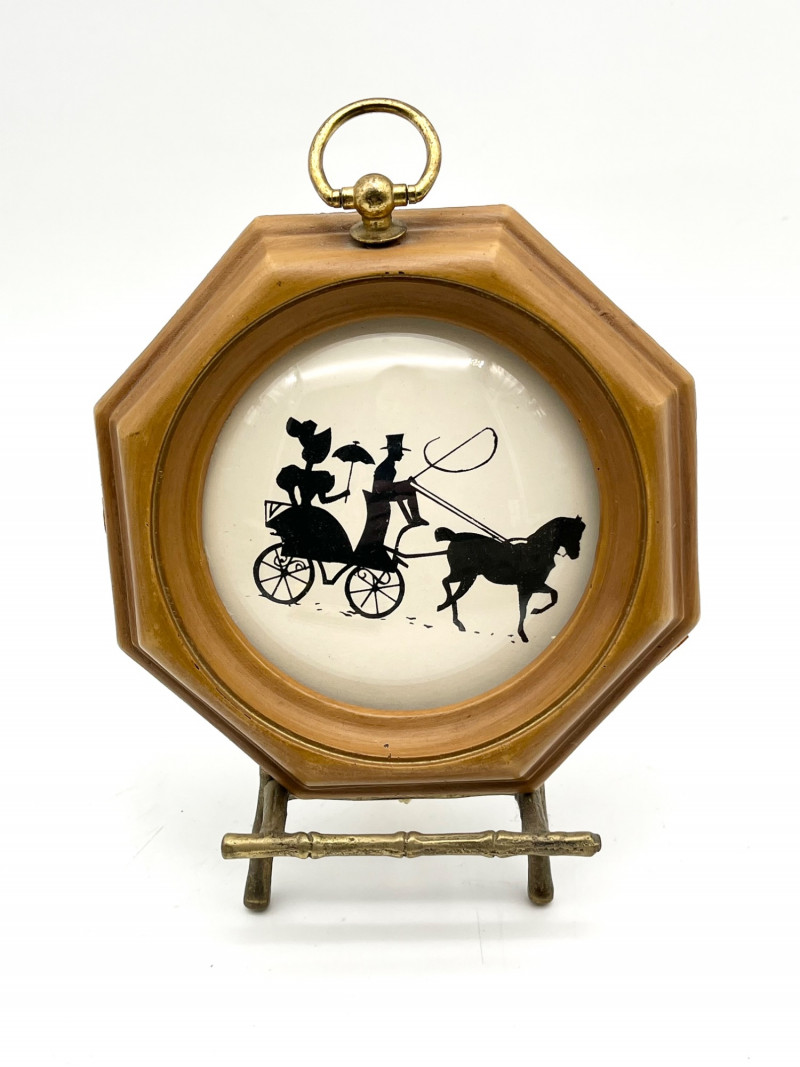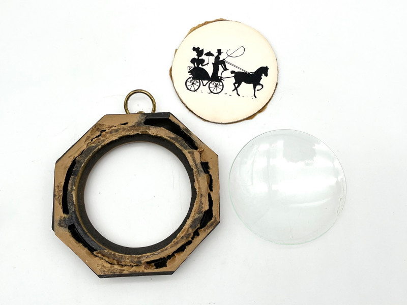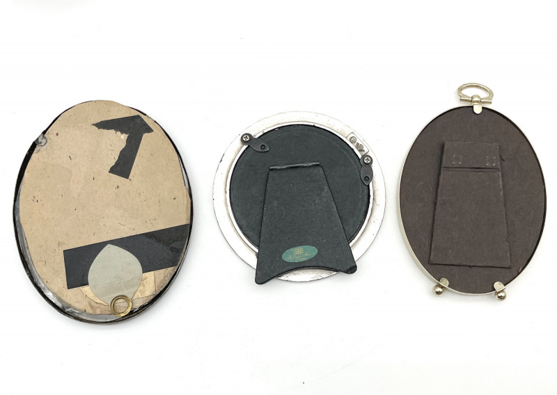 Variety of Tiny Frames The largest frame is 5" and the smallest is only 2" tall. The framed silhouette does not have clips or nails to hold the back on. See all photos to see details regarding condition.