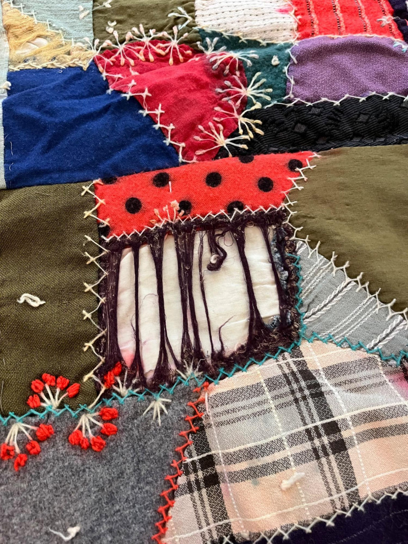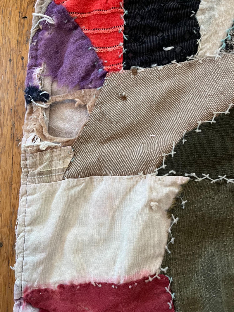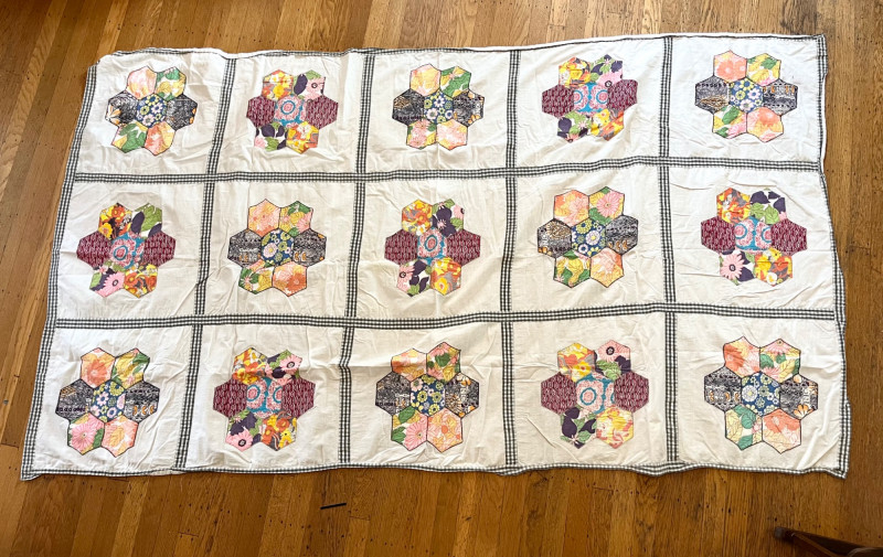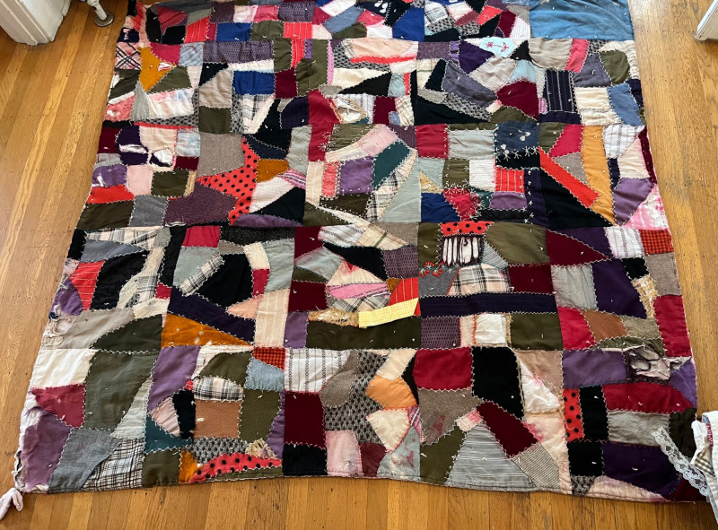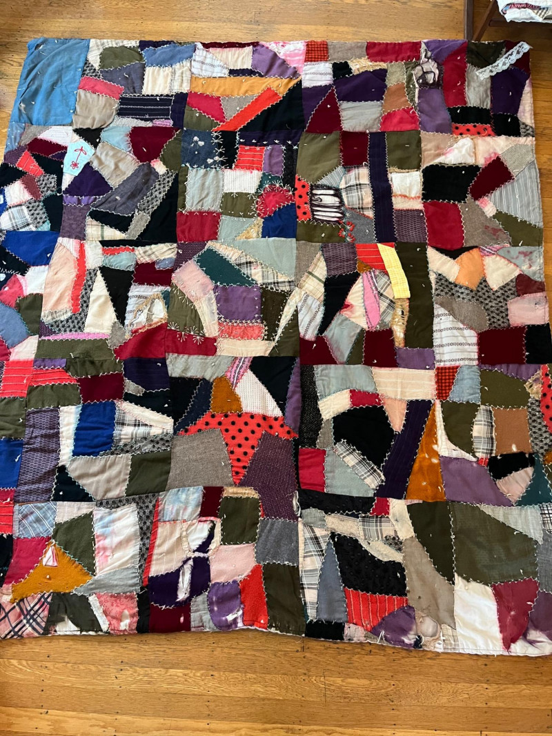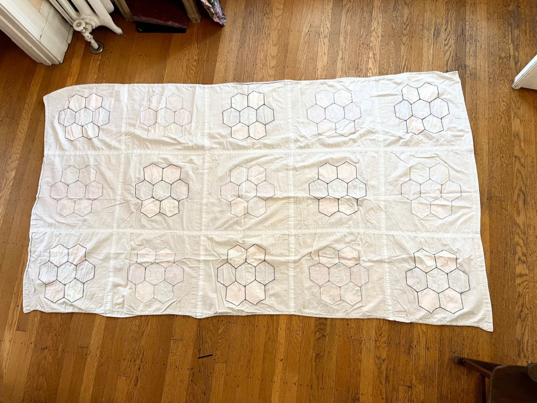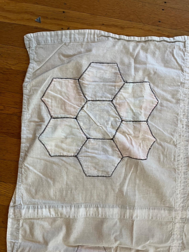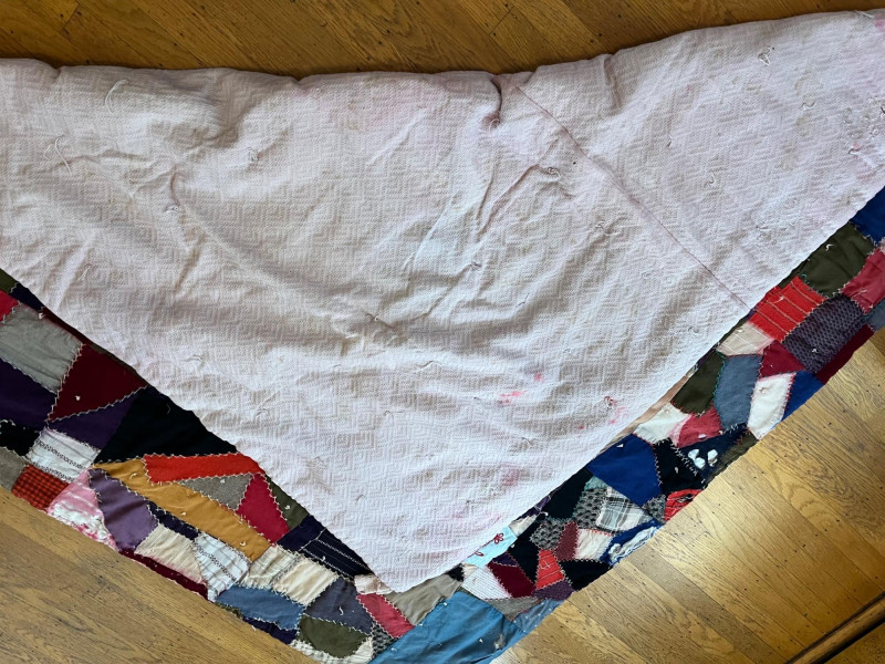 Quilt and Tablecloth - SEE ALL PHOTOS Quilt is 63" x 70" and the tablecloth is 45" x 80". NOTE: the quilt is very worn, see all photos to see details regarding condition.