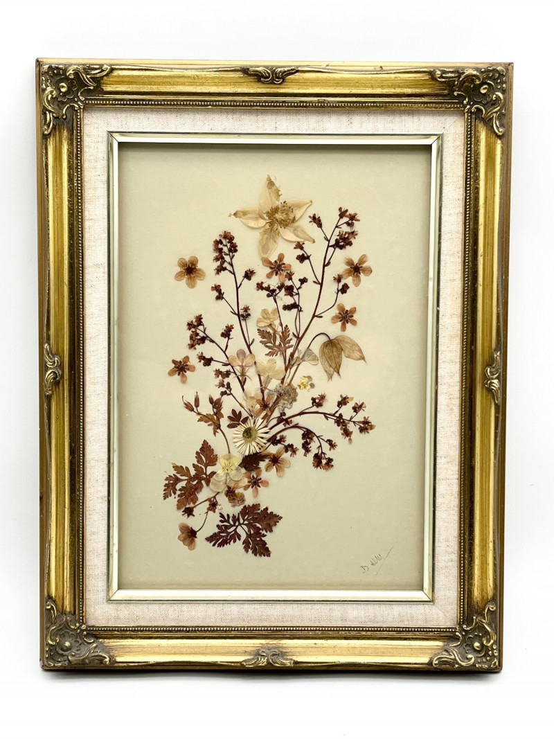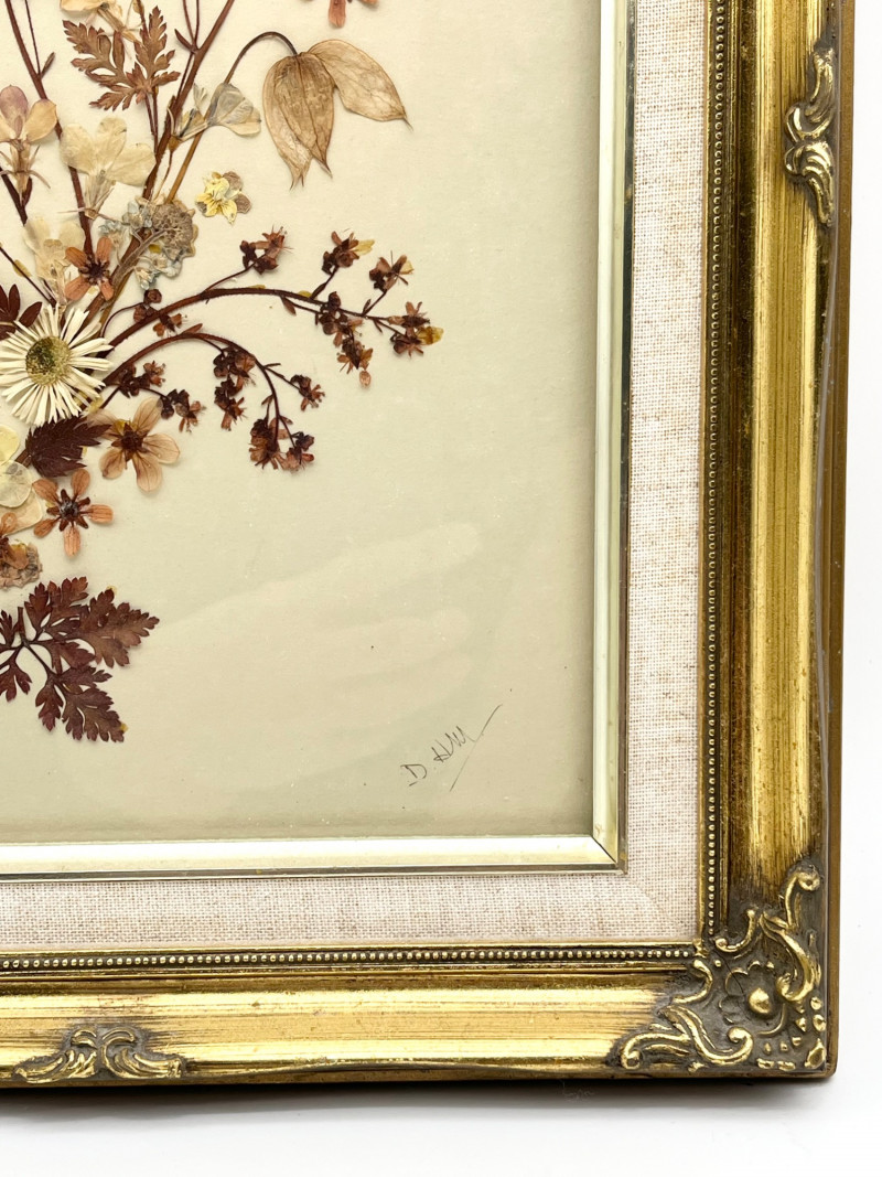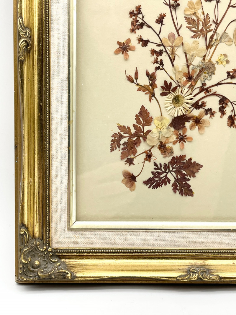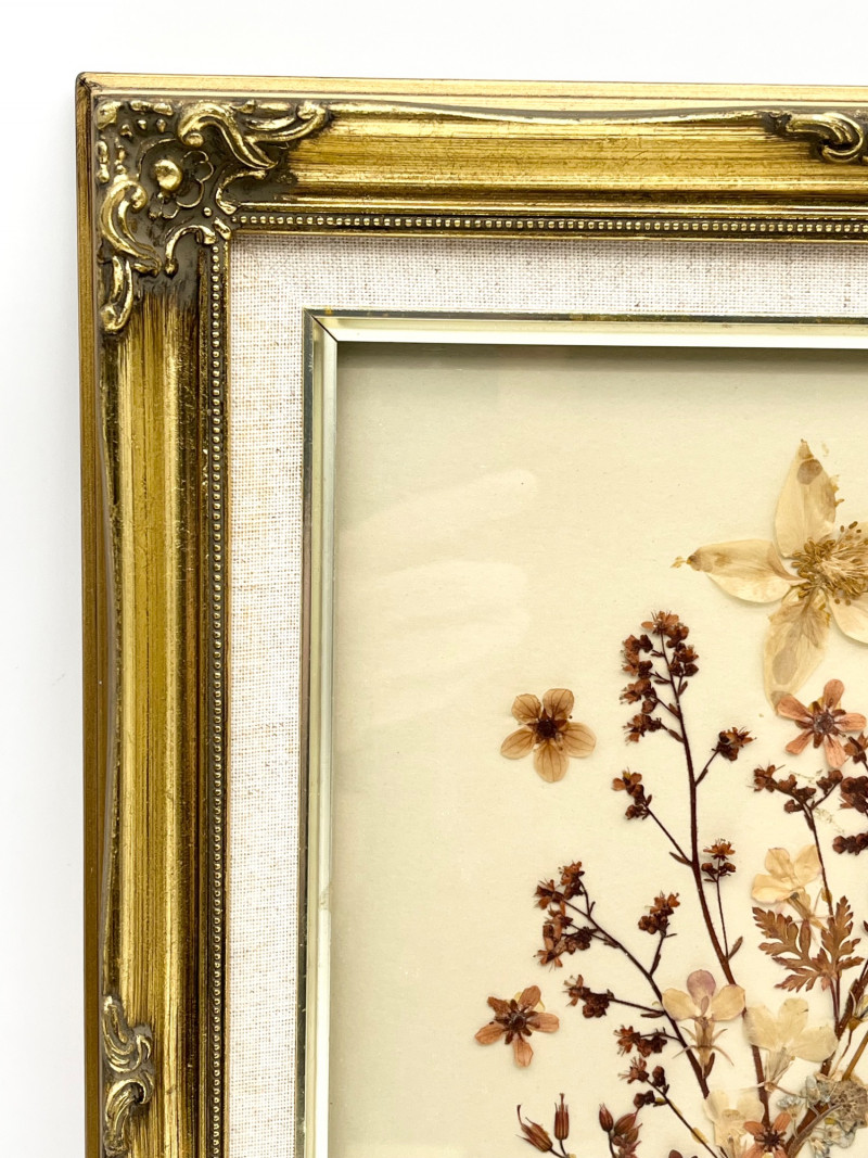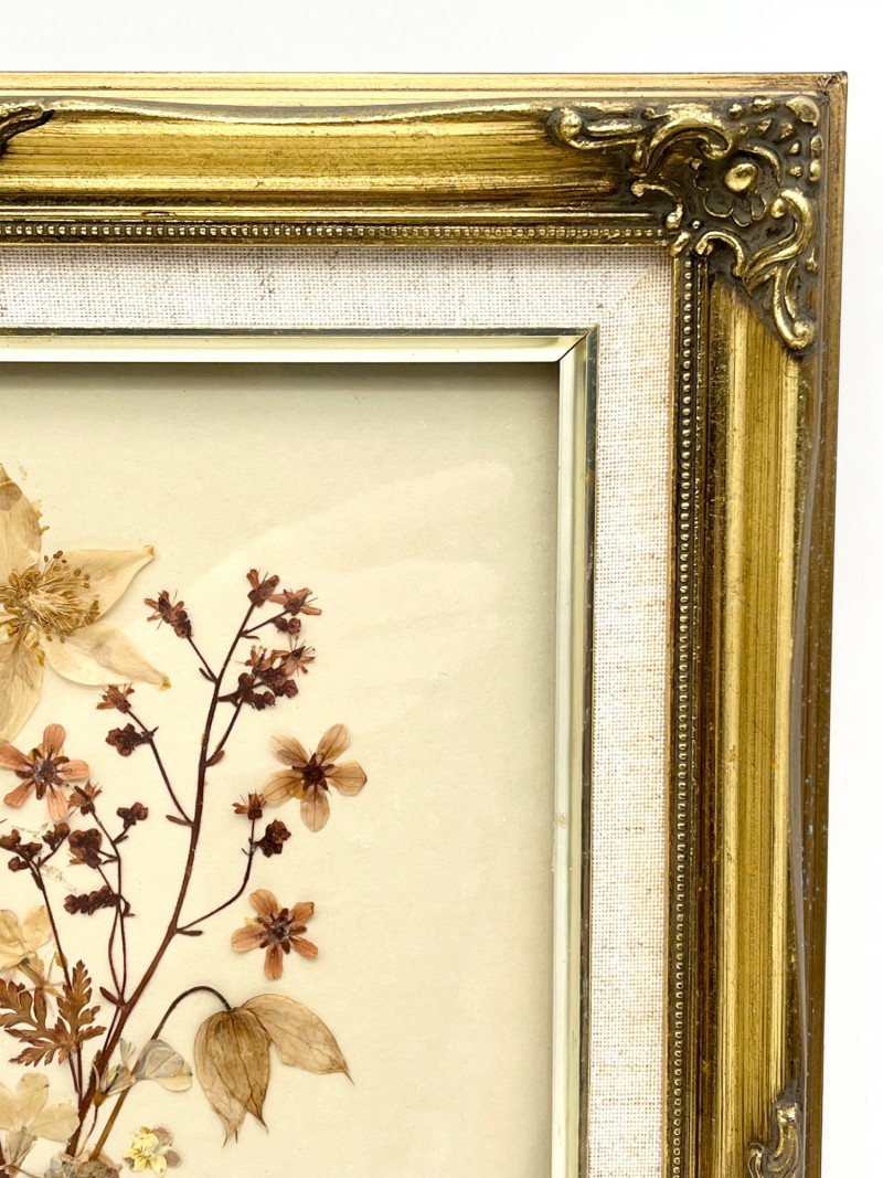 Lot # 136 - Framed Dried Flowers in Ornate Gold Frame - 11 3/4" x 15"