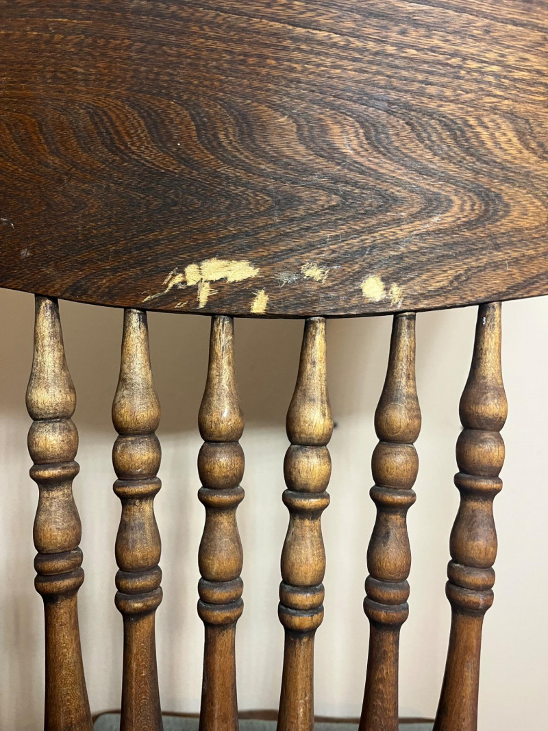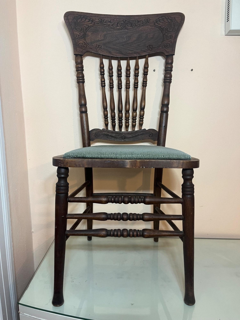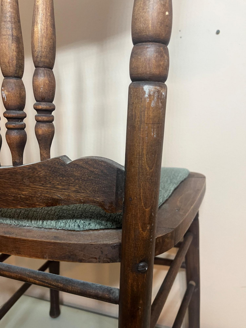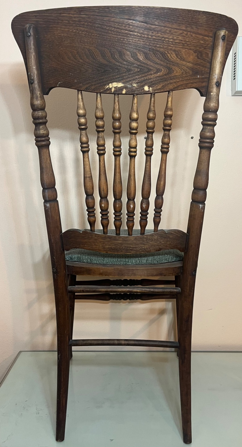Antique Oak Amish Pressback Styled Chair with Padded Seat See all photos for details regarding condition.
