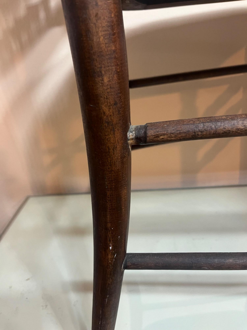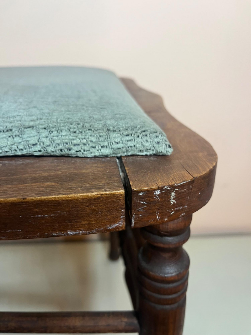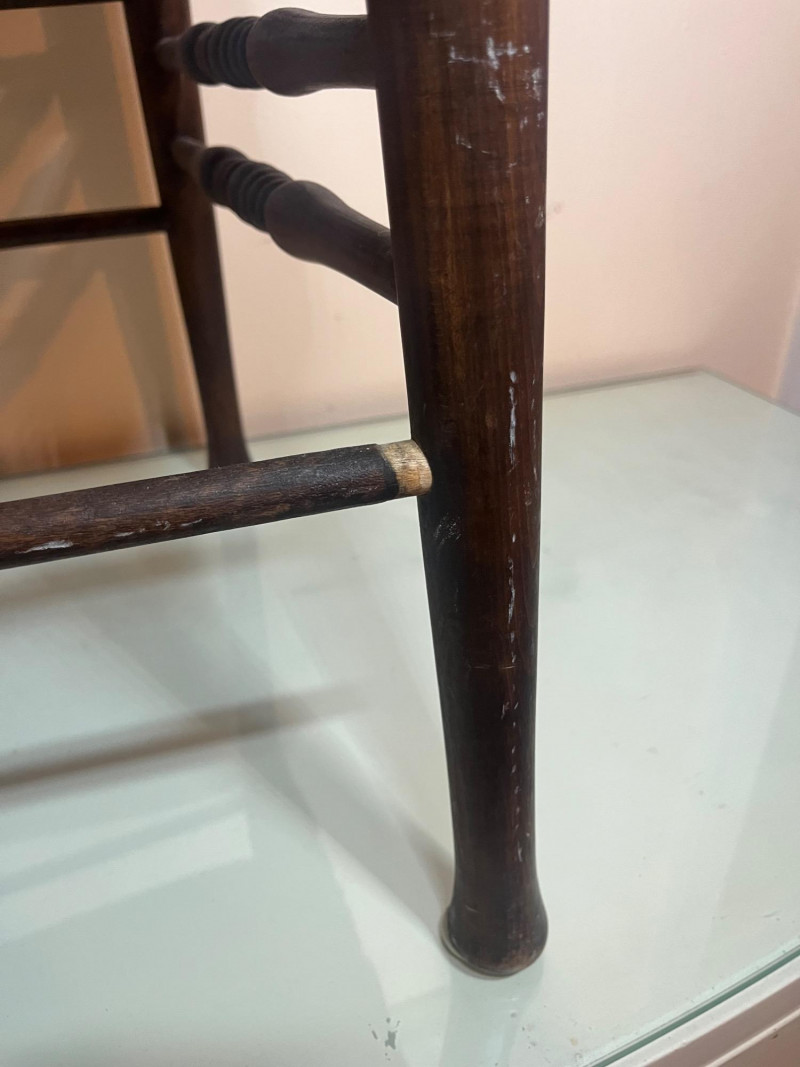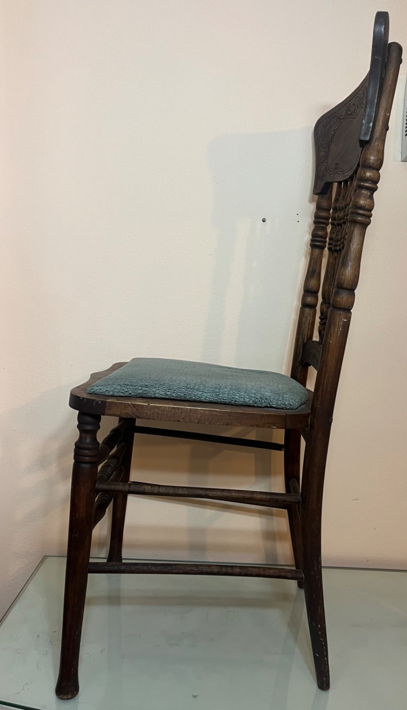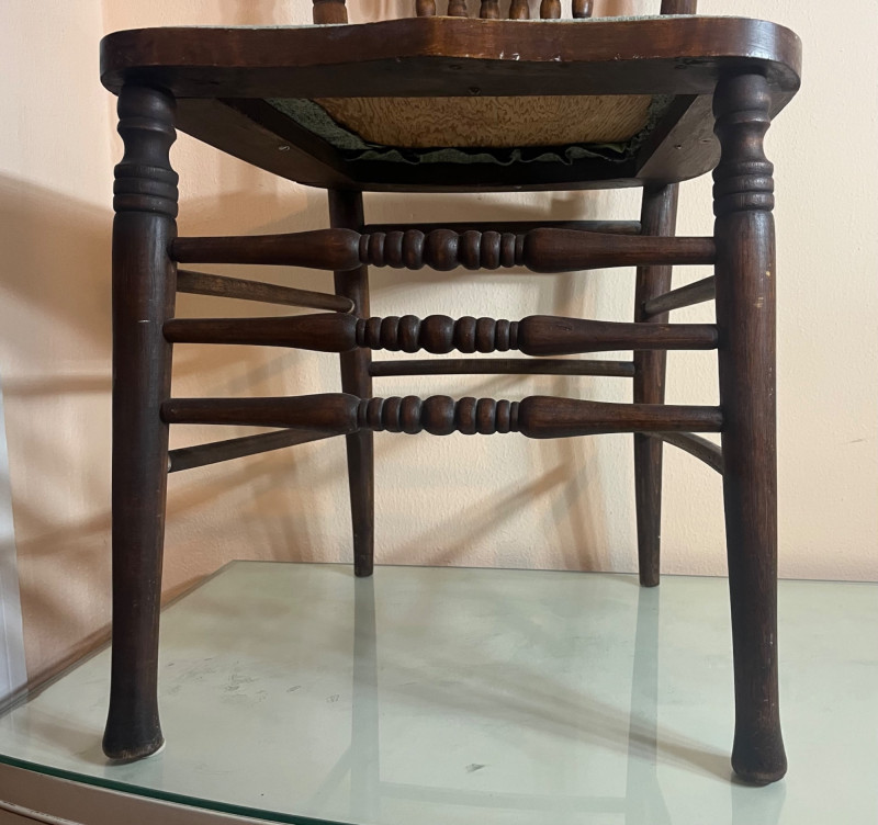 Antique Oak Amish Pressback Styled Chair with Padded Seat See all photos for details regarding condition.