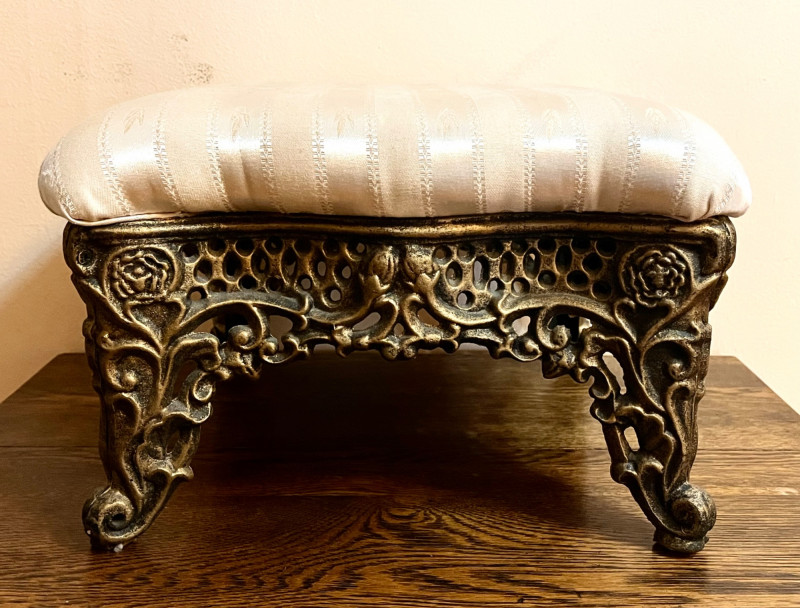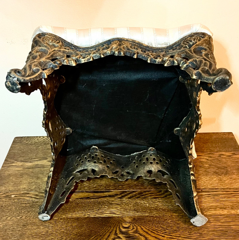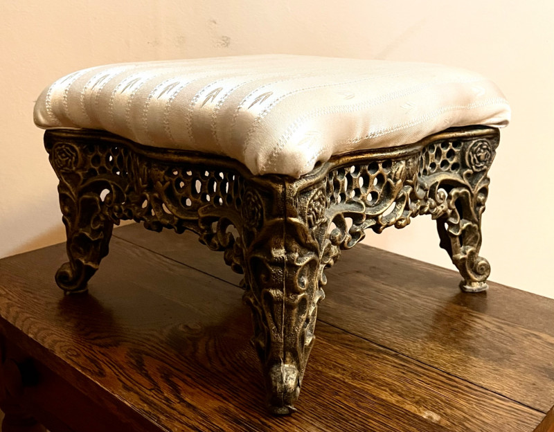 Lot # 150 - Heavy Brass Footstool with Elegant Cream-Colored Cloth Top