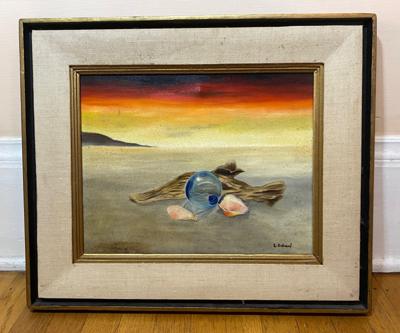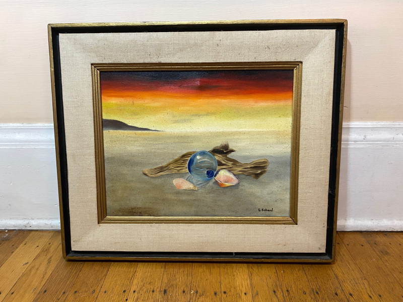 Original Painting on Canvas of Driftwood and Shells Measures 17" x 20" See all photos regarding condition.