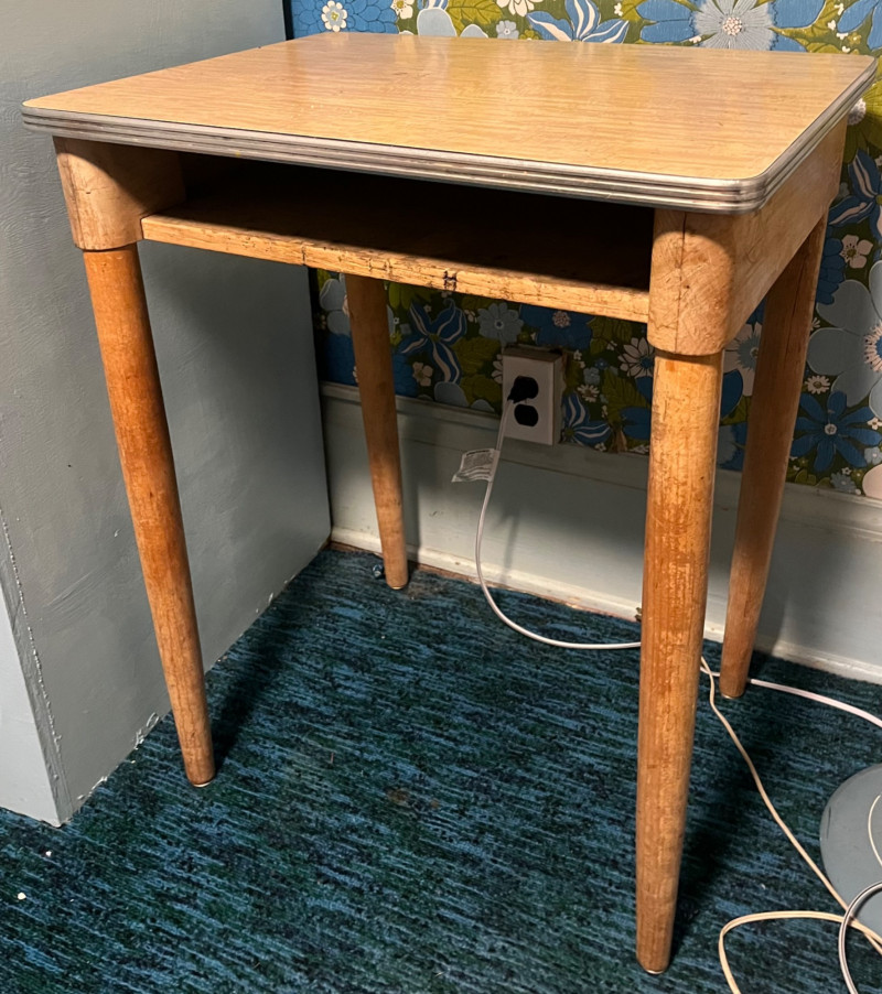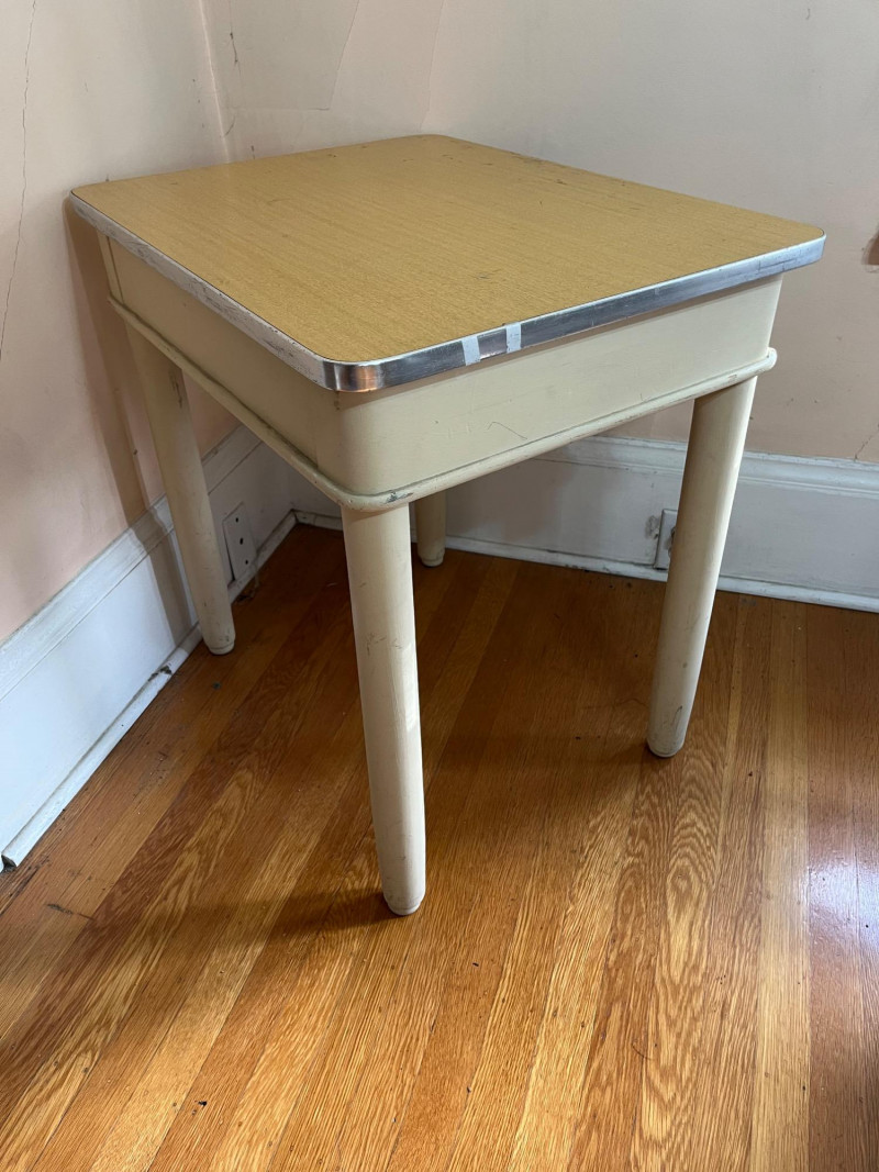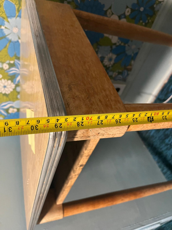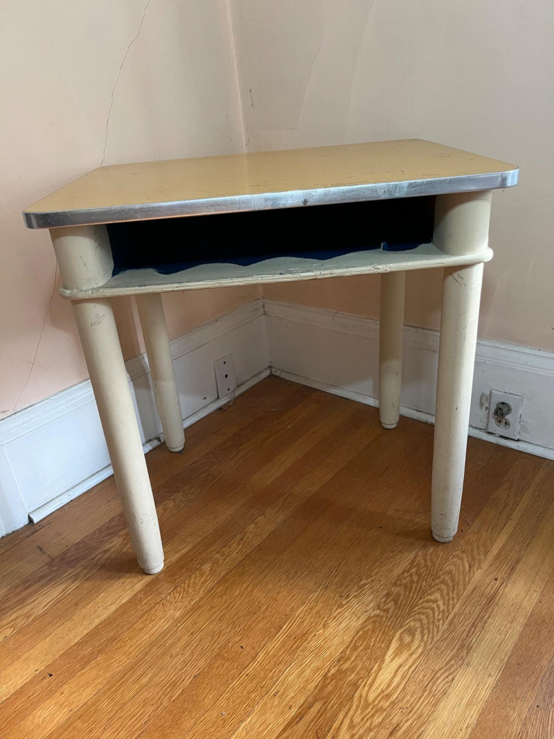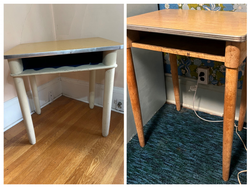 Two Vintage Wooden Student Desks in Two Heights The smaller one has a wobbly leg, but it is still quite sturdy. See all photos for details regarding cosmetic condition.