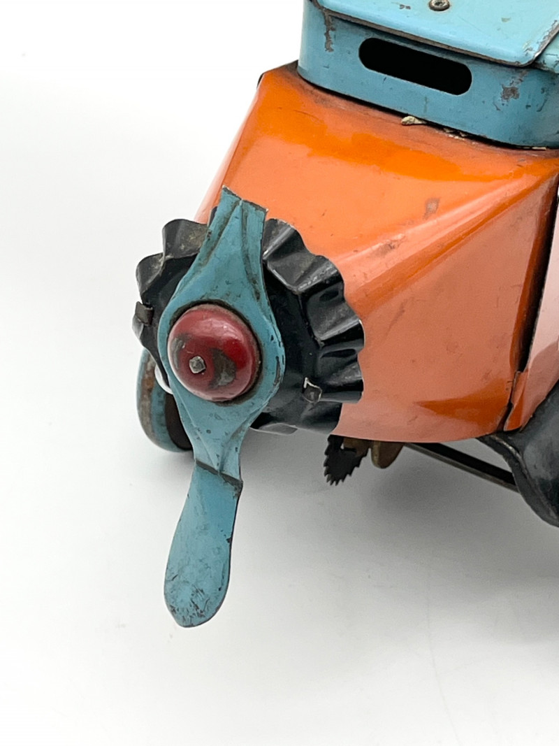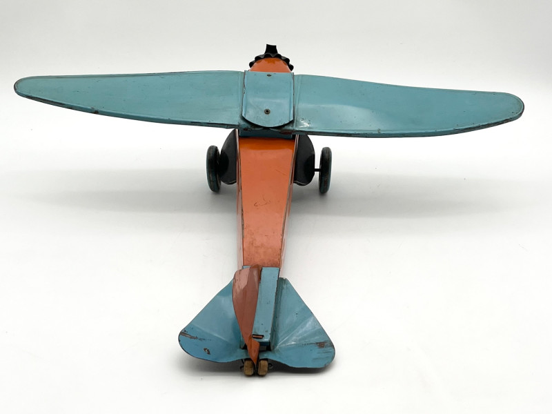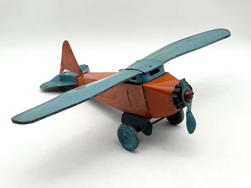 Lot # 166 - Vintage Scheible Tin Airplane with Folding Wings and Hangar