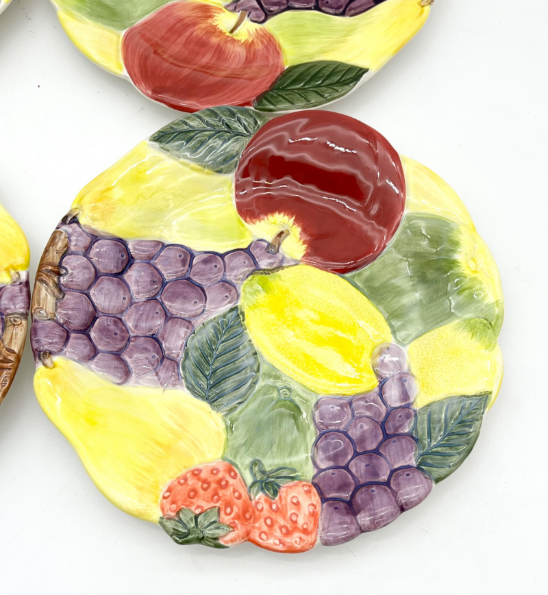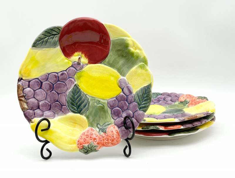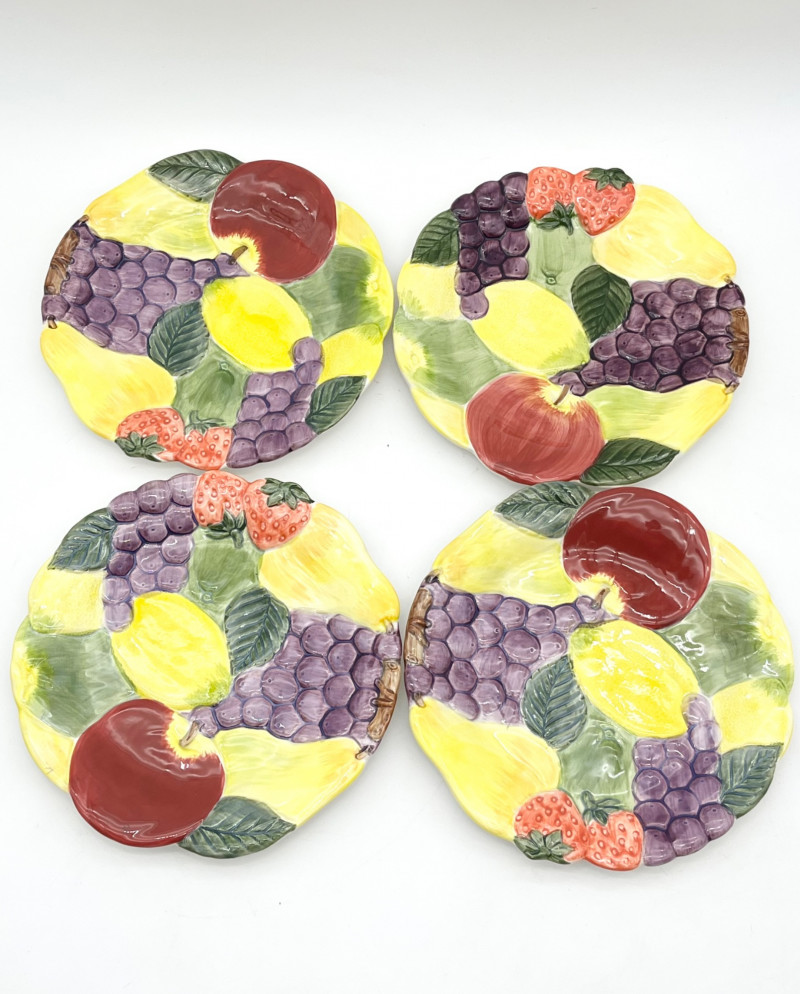 Set of 4 Fruit Motif Salad Plates These are 8 1/4" wide. One has a small chip on the back.