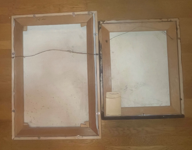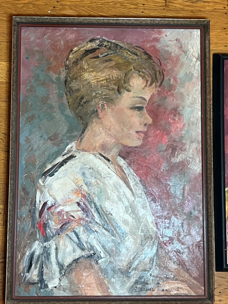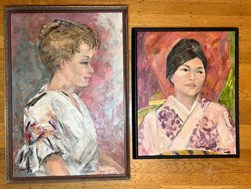 Two Oil Paintings on Canvas of Woman's Portraits The larger painting is 19"x 27" and the smaller is 17 1/2" x 21 1/2". Both are signed by the (same) artist and look to be in good condition.