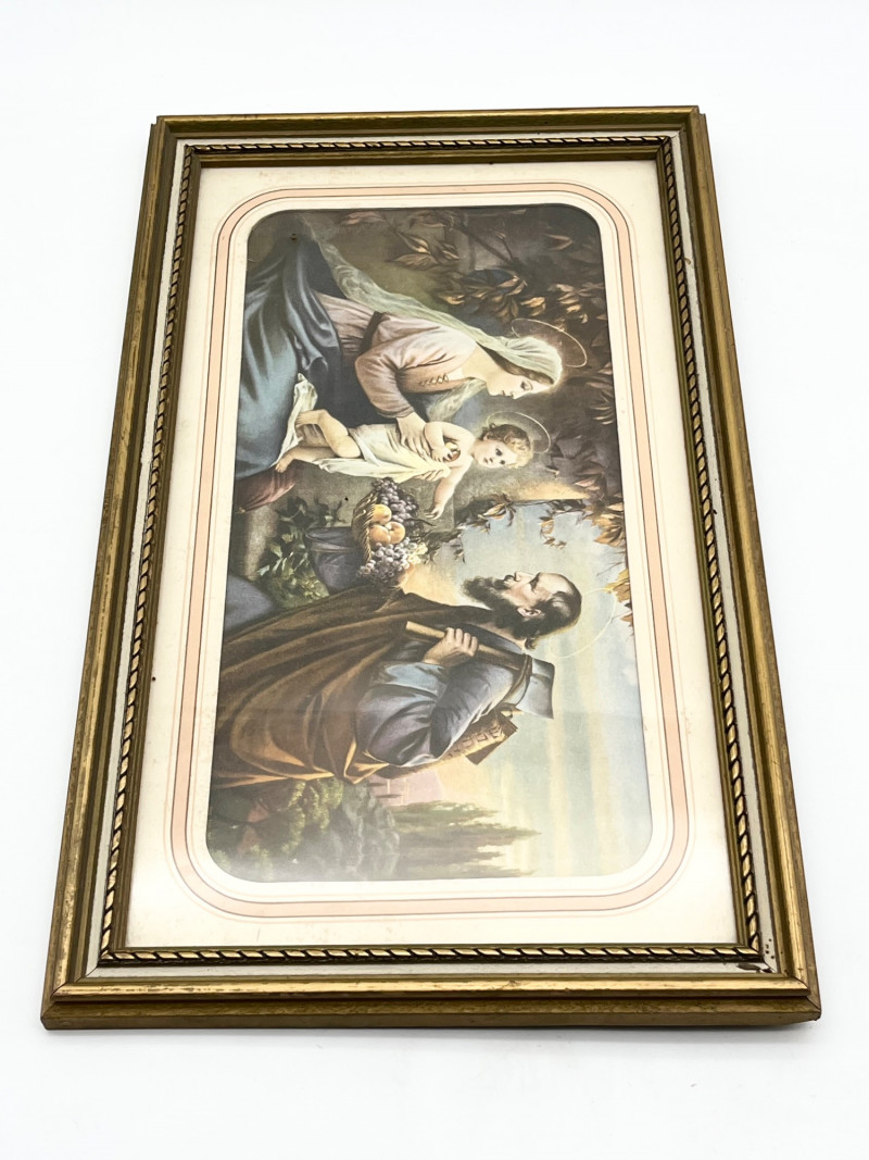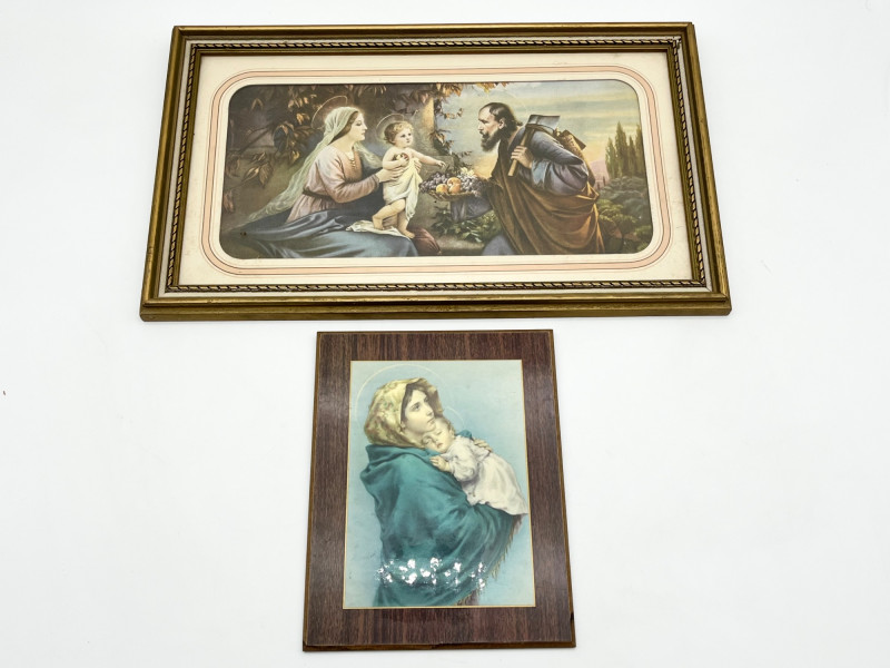Lot # 180 - Antique Lithograph of Joseph, Mary & Jesus and Print on Board