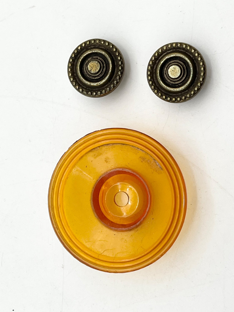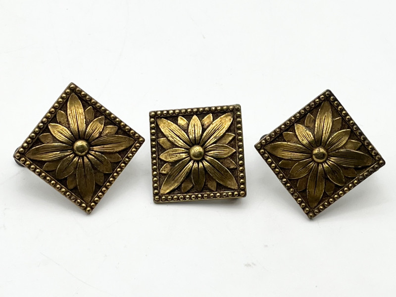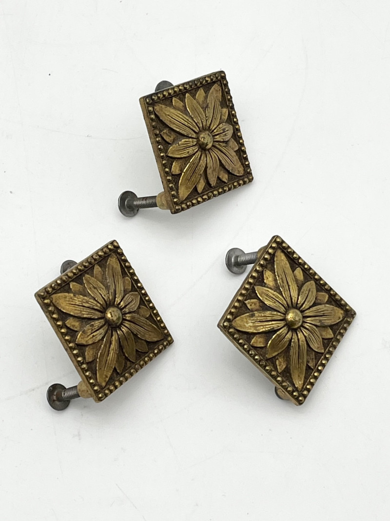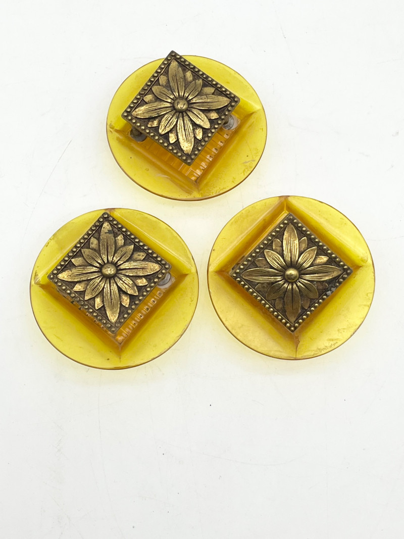 Lot # 186 - Brass Daisy Drawer Pulls with Bakelite? Accents