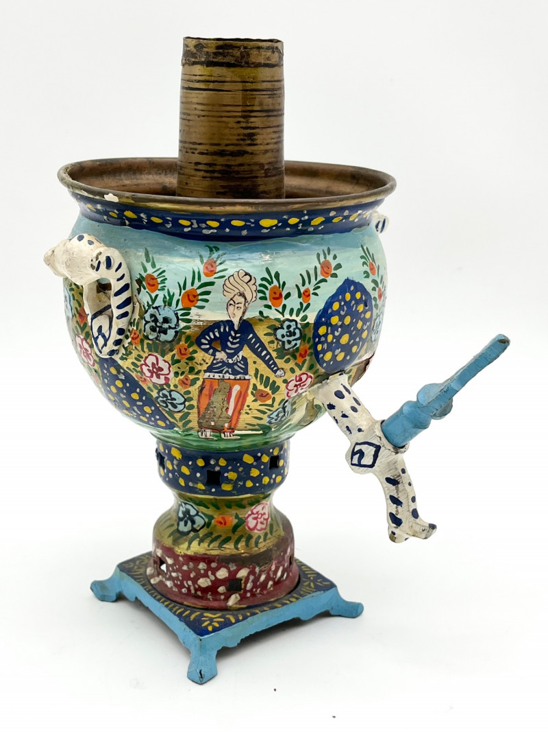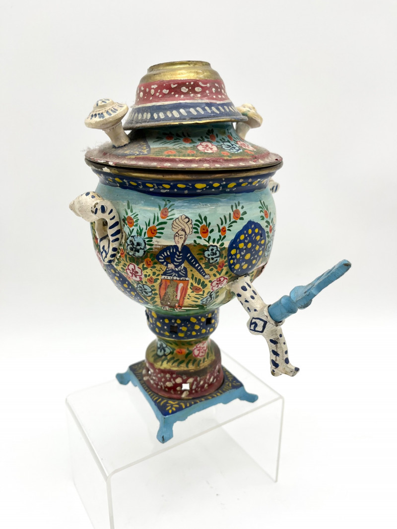 Lot # 187 - Miniature Hand Painted Brass Samovar