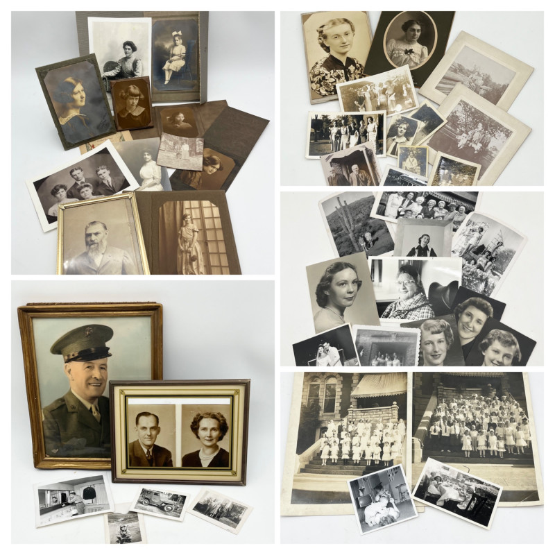 Big Box of Vintage and Antique Photographs The photos shown in these pictures are just a sample of the beautiful photos in this box. There are both professional studio and amateur personal camera photos and SO much history in this box.