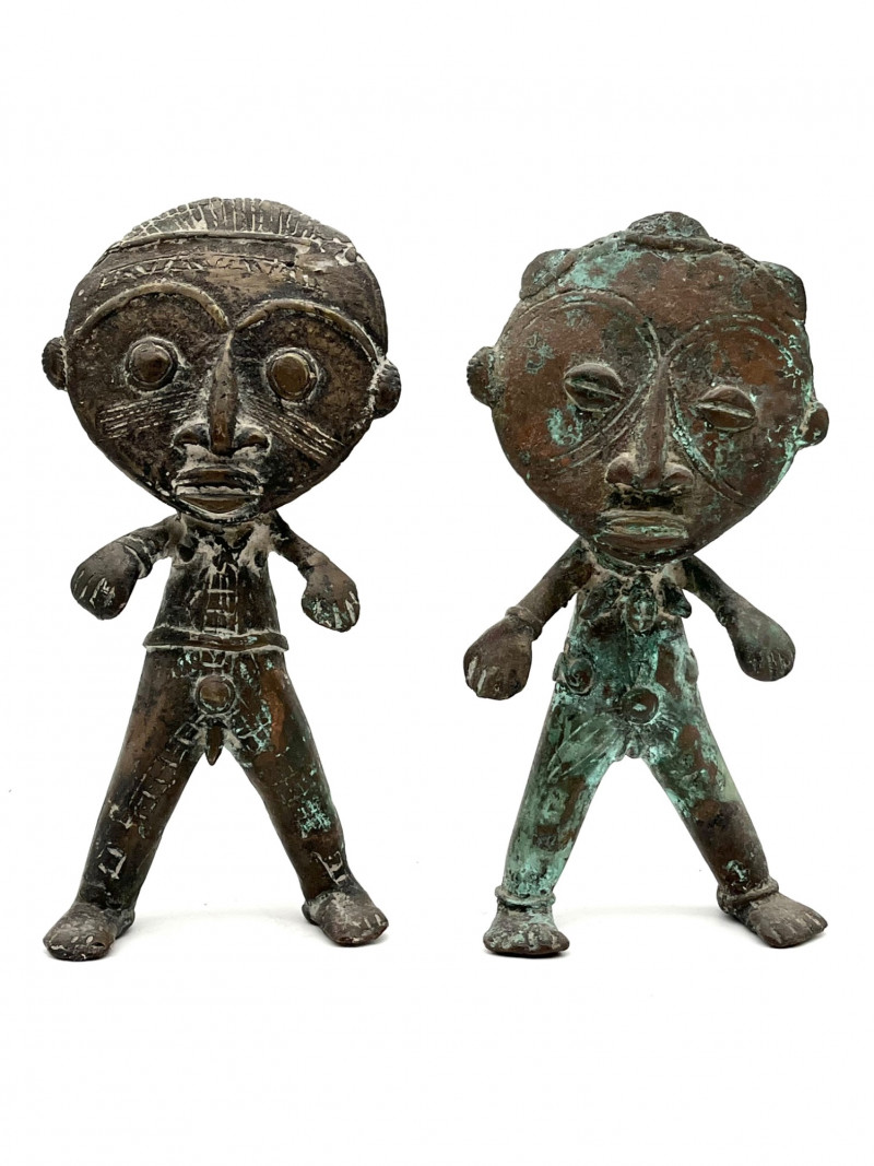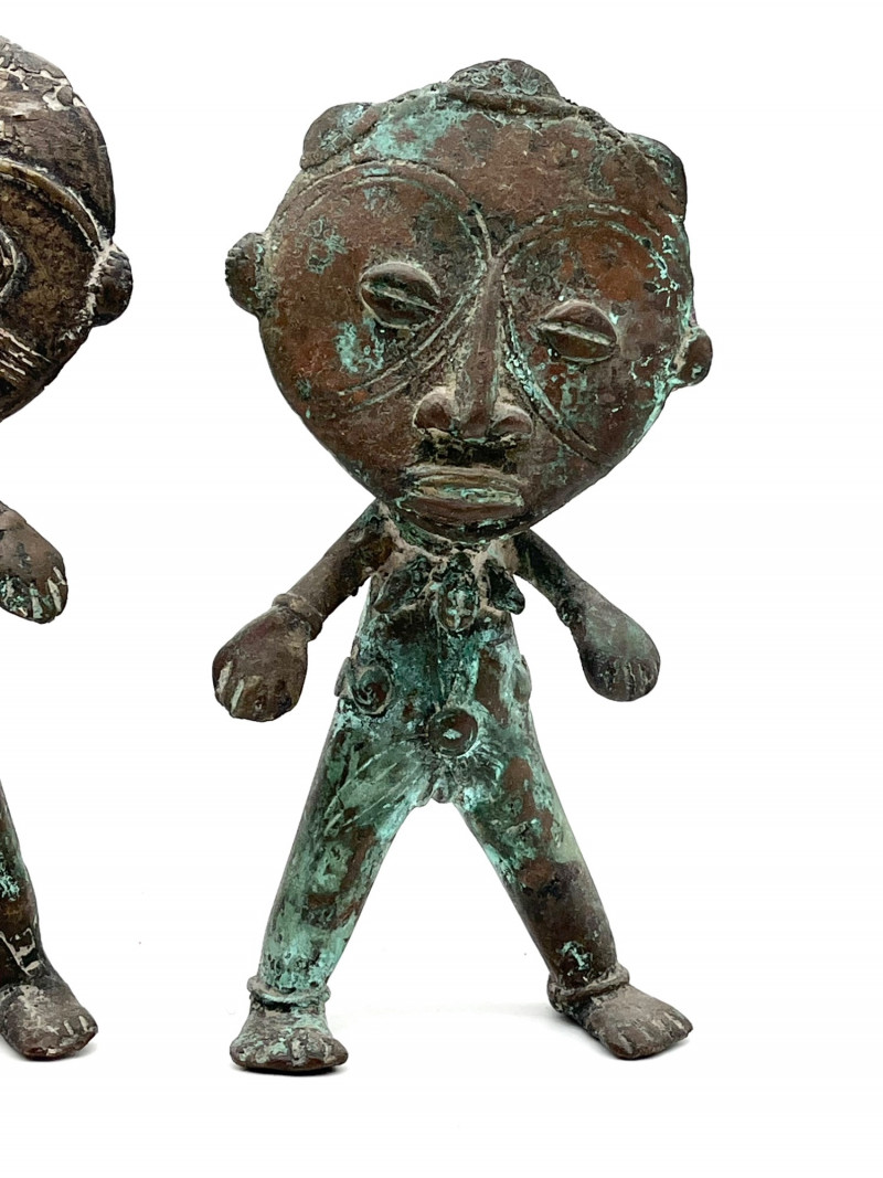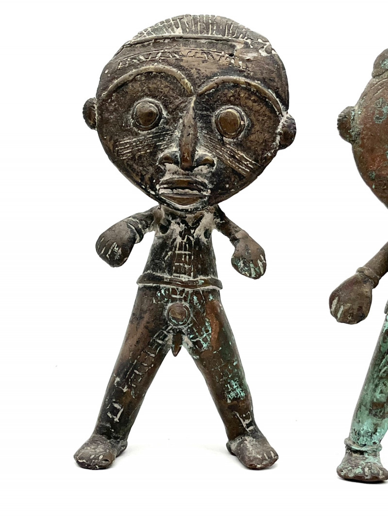 Pair of African Ancestral Bronze Statues These are about 7 1/2" tall and in good condition.