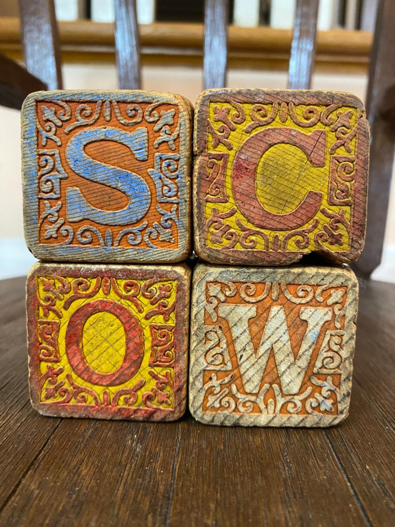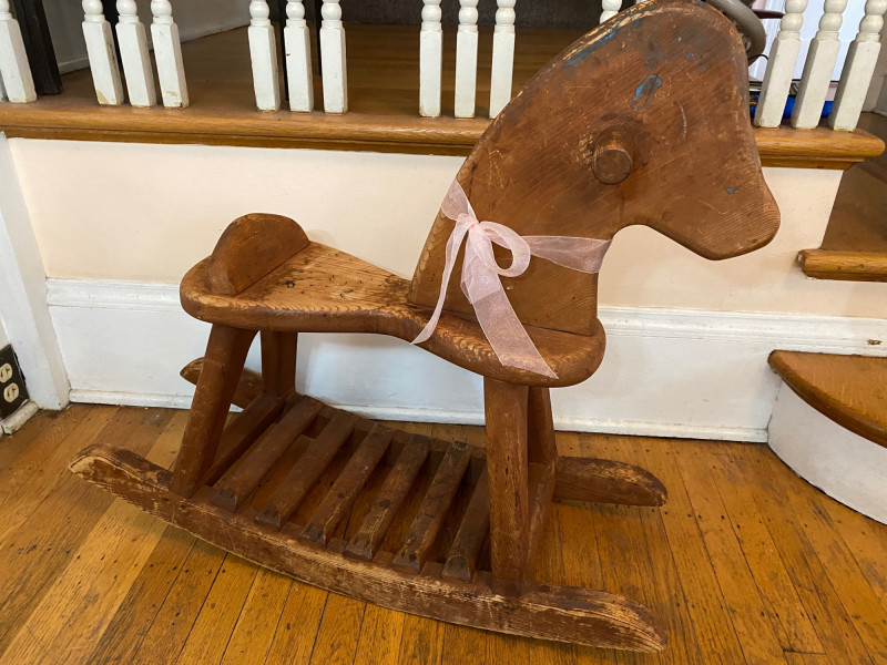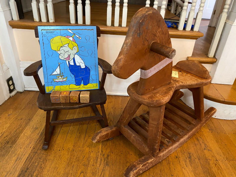 Rocking Horse and Chair Wooden Toys feat. Beany & Cecil Wood Puzzle This lot is all wood! The rocking horse is dated but sturdy as is the chair. The puzzle is in great condition for its age (circa early 1960's) and there are four antique wooden alphabet blocks to complete this nostalgic lot.