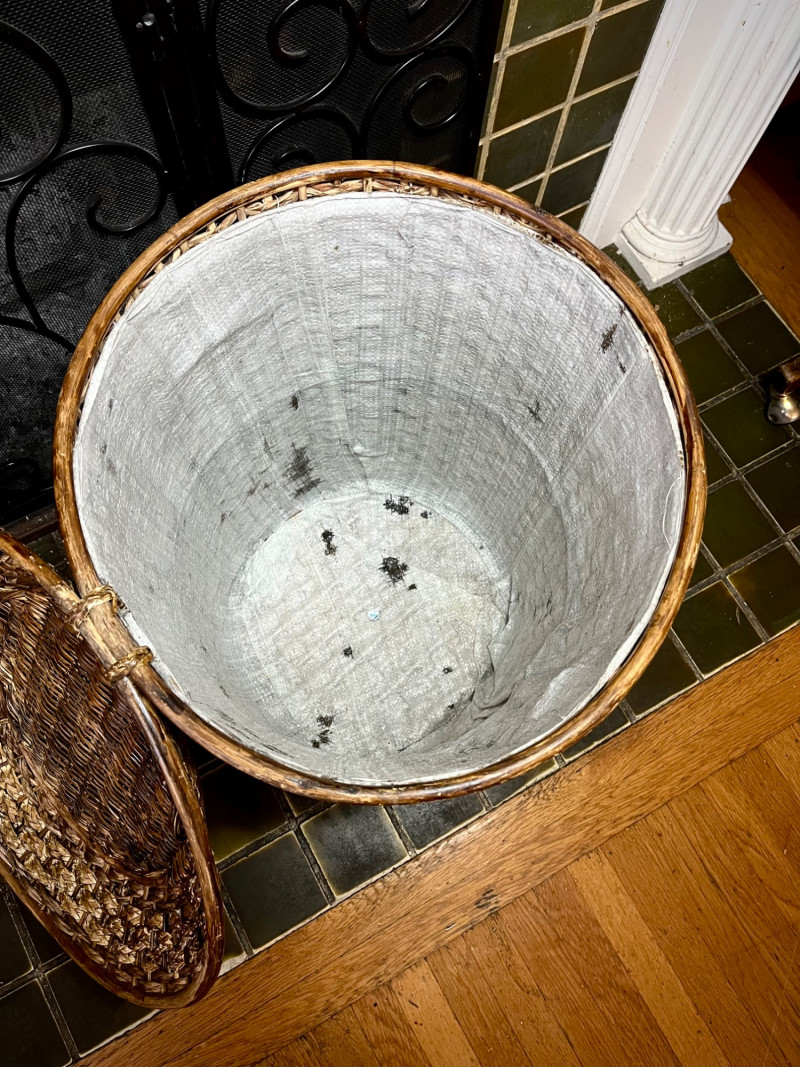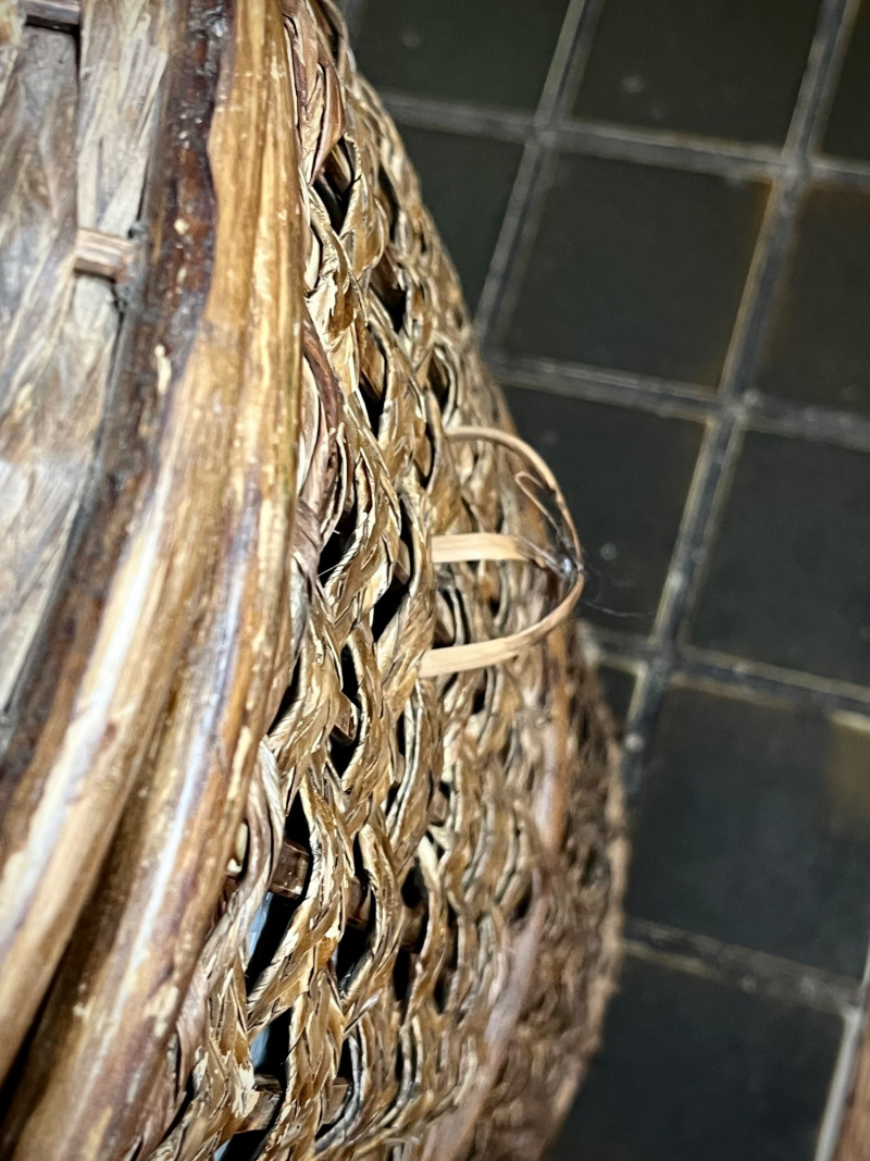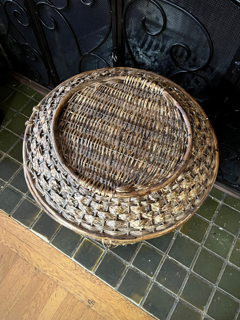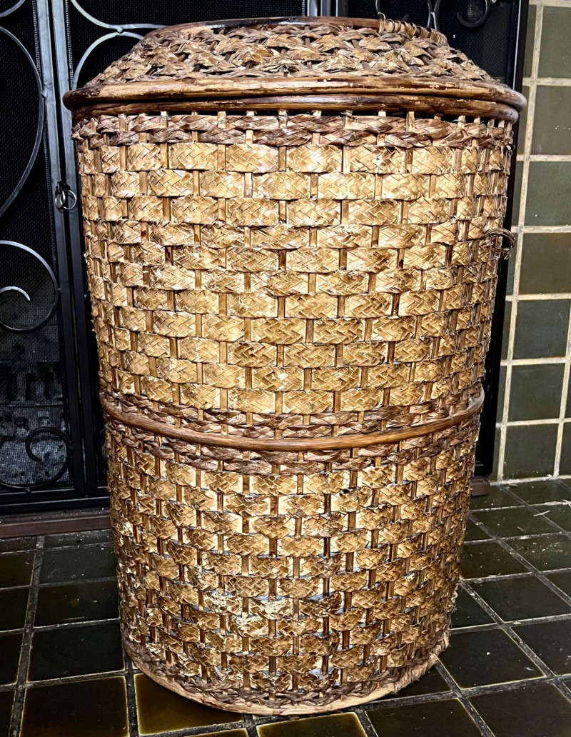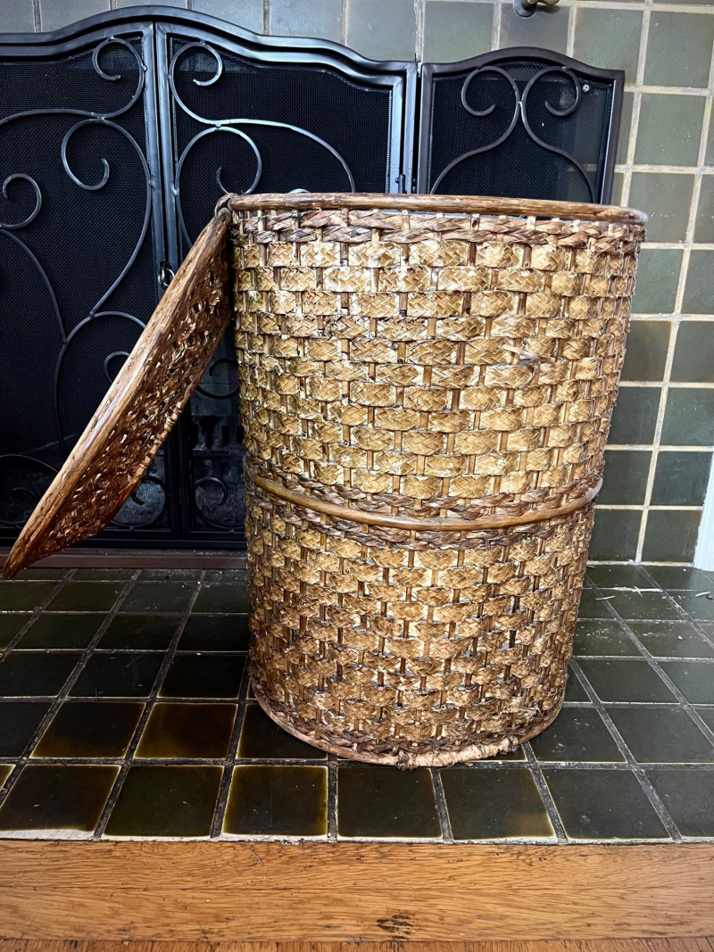 Hamper Sized Basket with Lid 18" wide and 26" tall In good condition with some minor flaws. See photos for details.