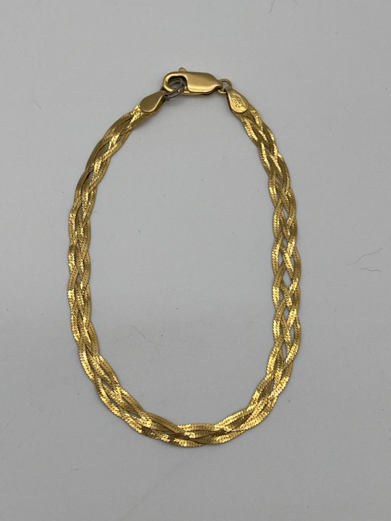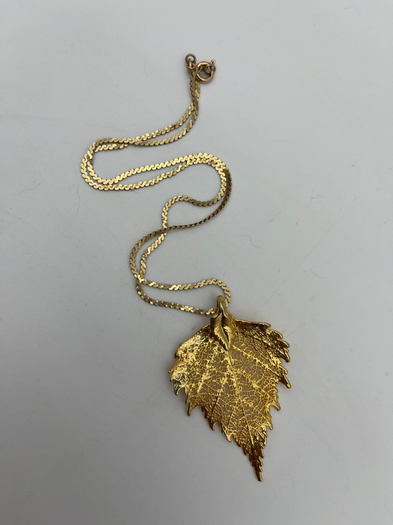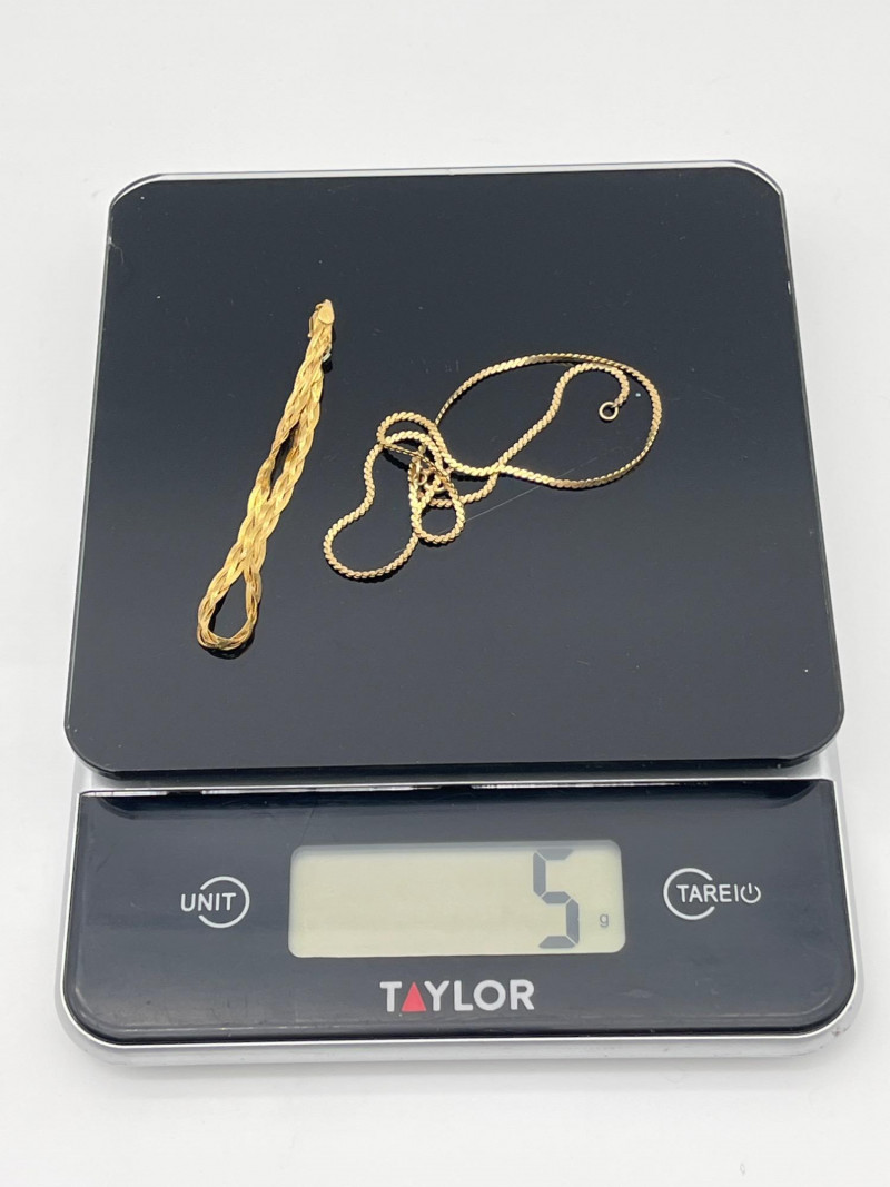 14k Gold Braided Chain Bracelet Gold Dipped Leaf Pendants & Necklace This lot includes: Total weight of 14k gold (shown in last photo) is 5 grams and only includes chains because gold dipped leaves are gold plated.