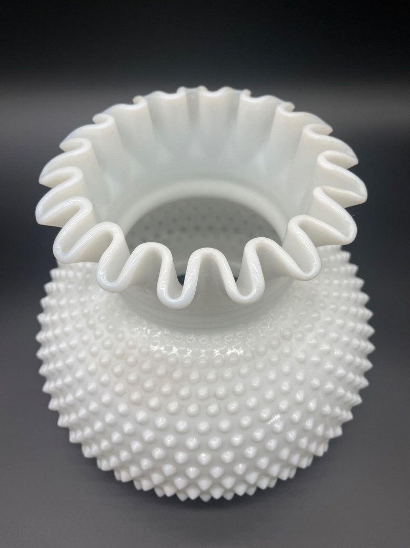 Lot # 9 - Vintage Milk Glass Hobnail Hurricane Lamp With Ruffled Top