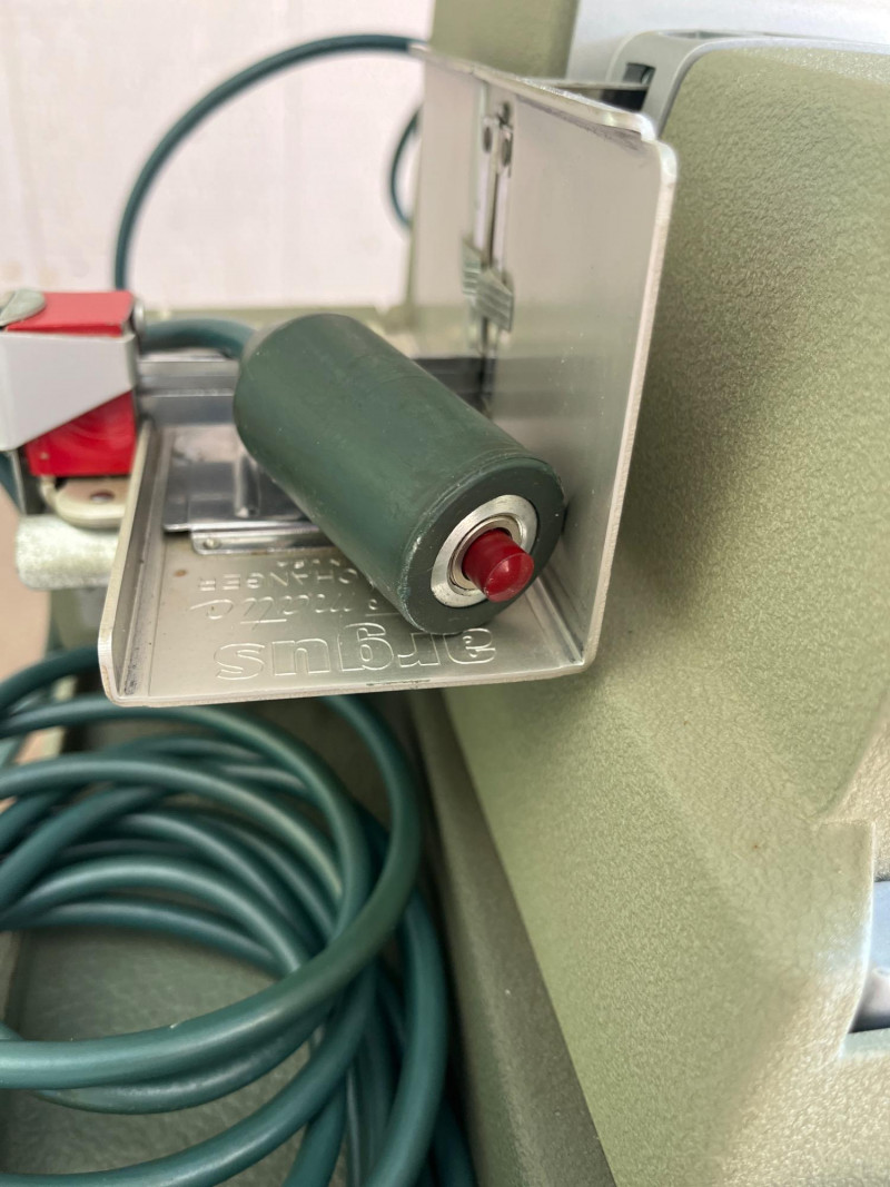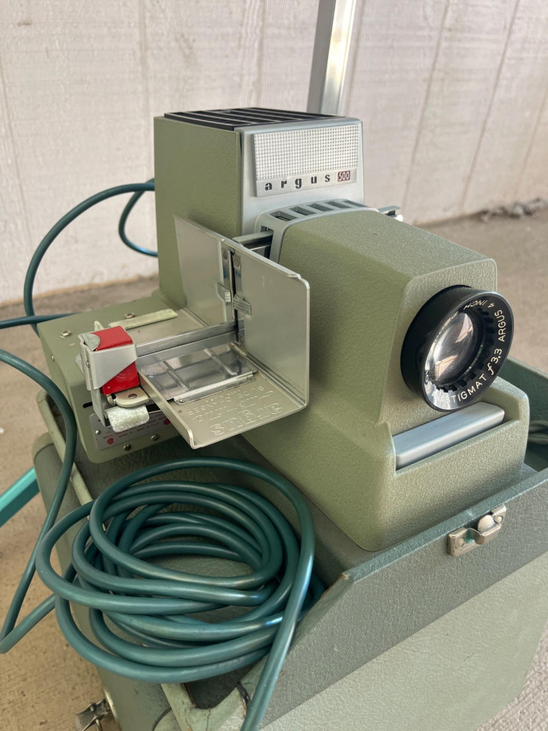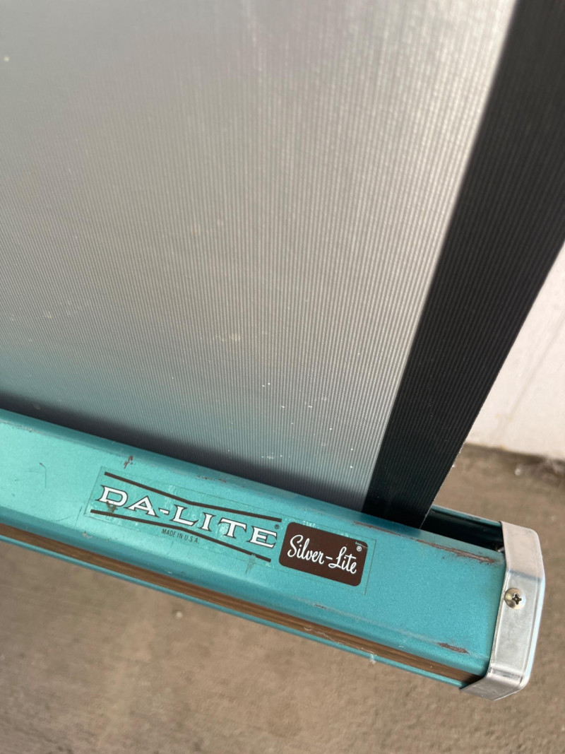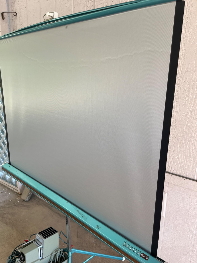 Vintage Argus Projector and Da-Lite Silver Lite Screen Projector is untested. The top of the screen has some water damage that, fortunately, only seems to show on the back side. The frame of the screen is very sturdy!